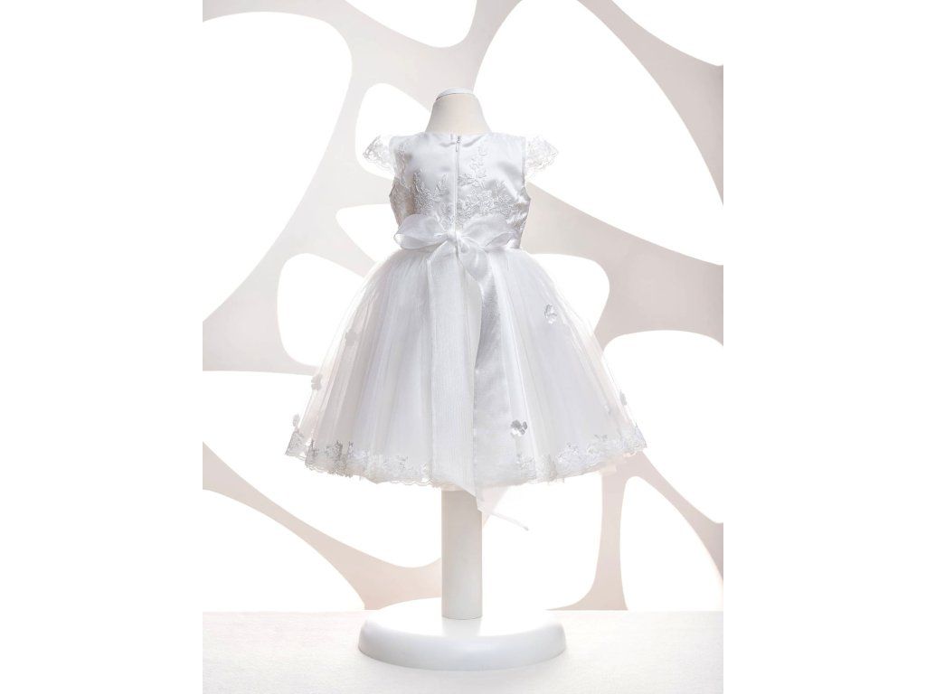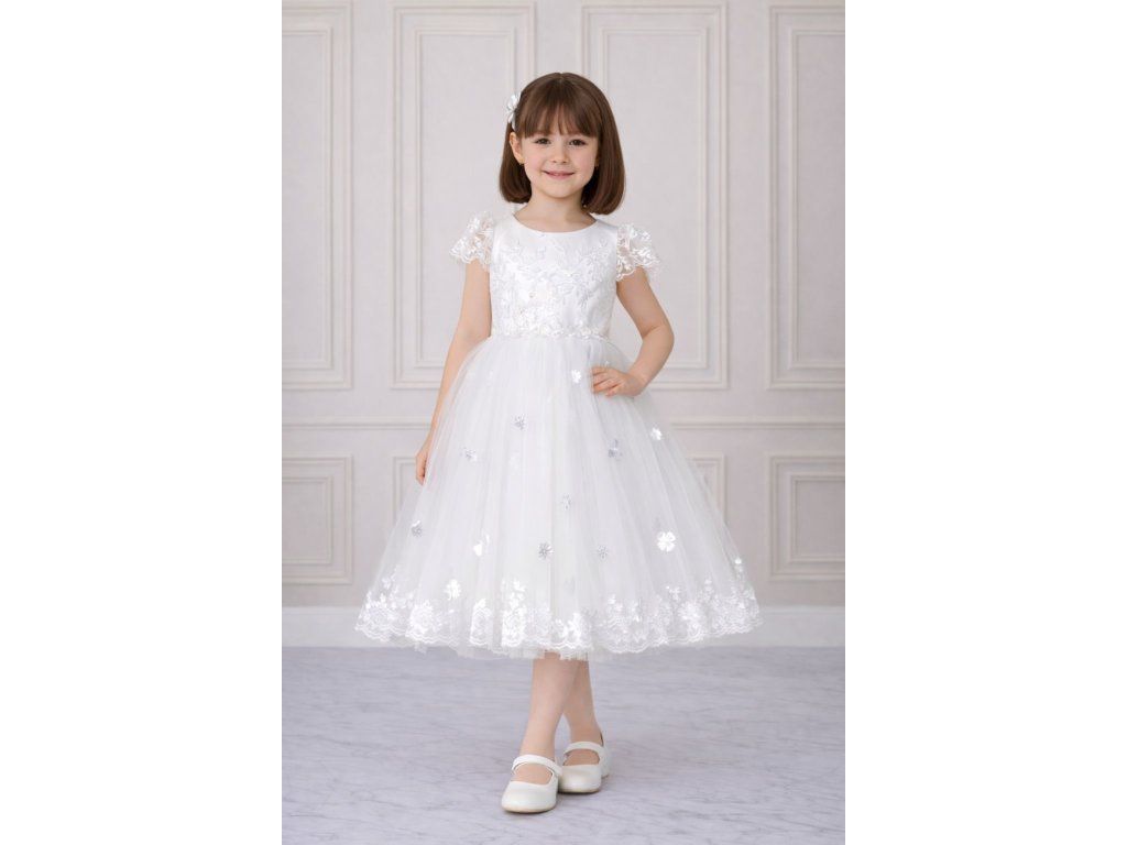 Družičkovské šaty detske, s tylovou sukňou a rukávmi.