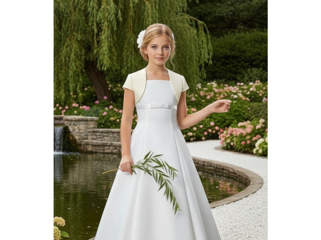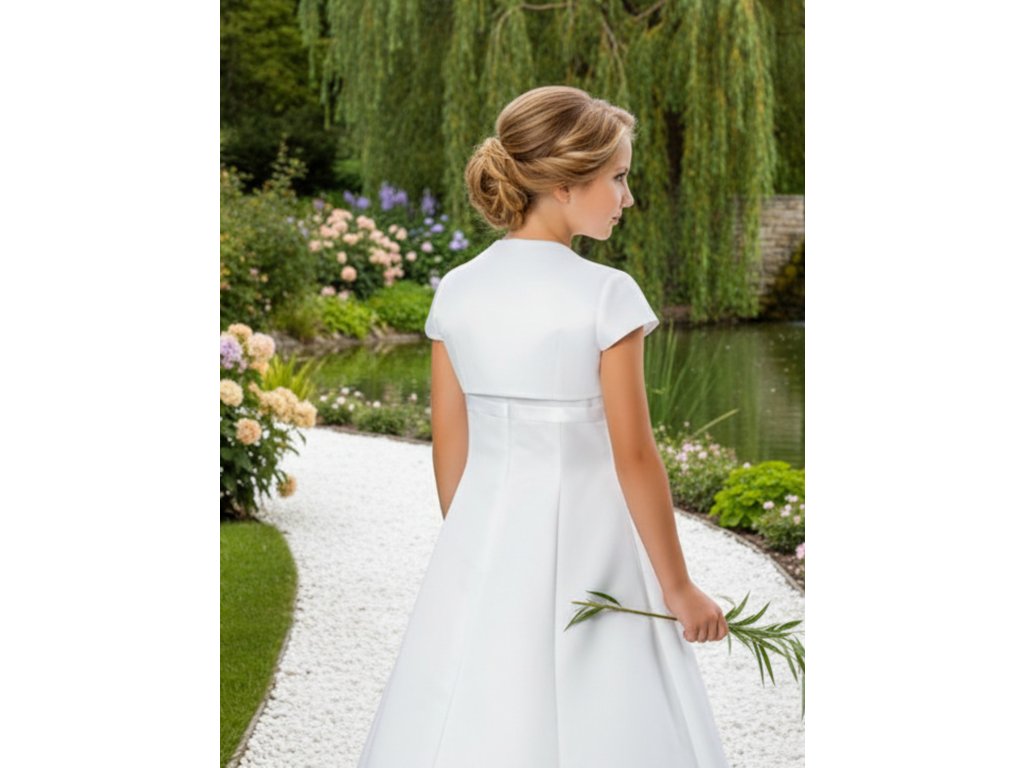 Detské saténové svadobné bolerko s krátkym rukávom.