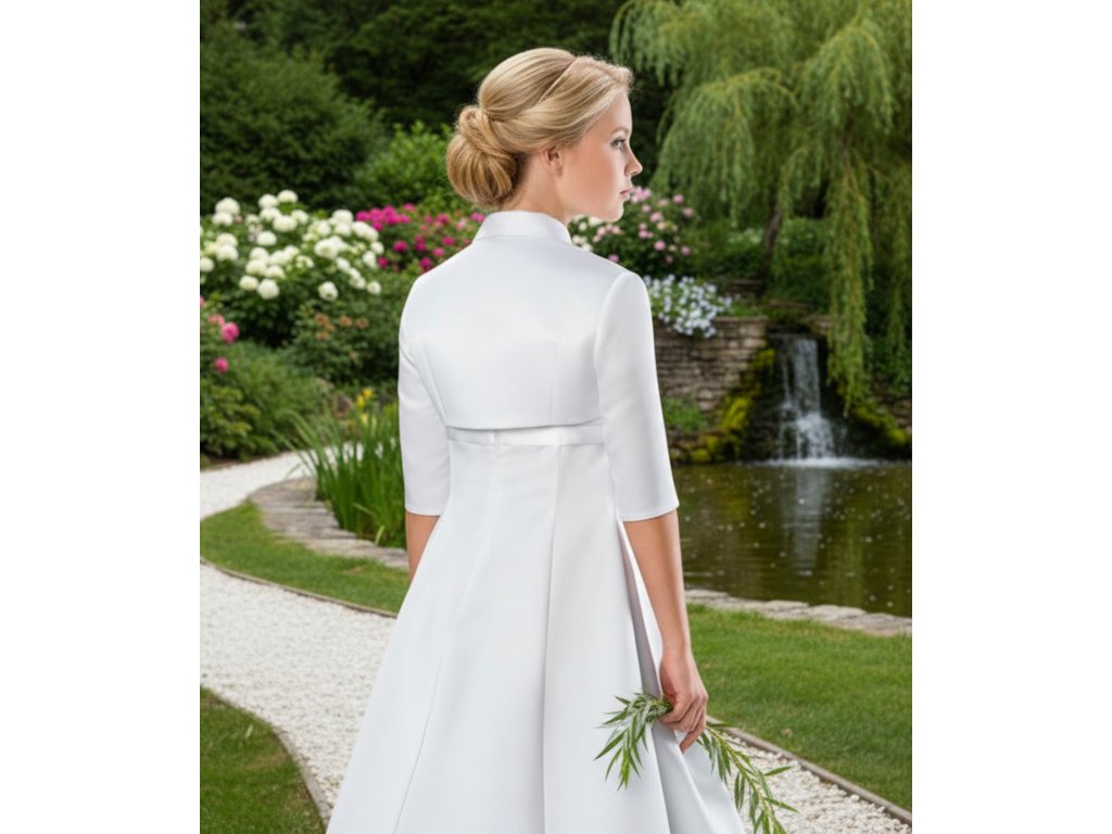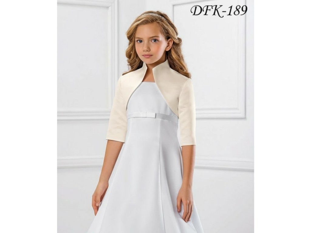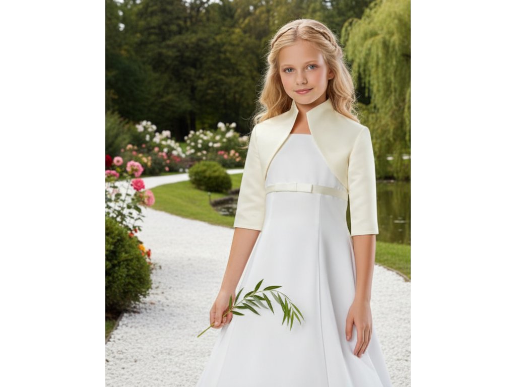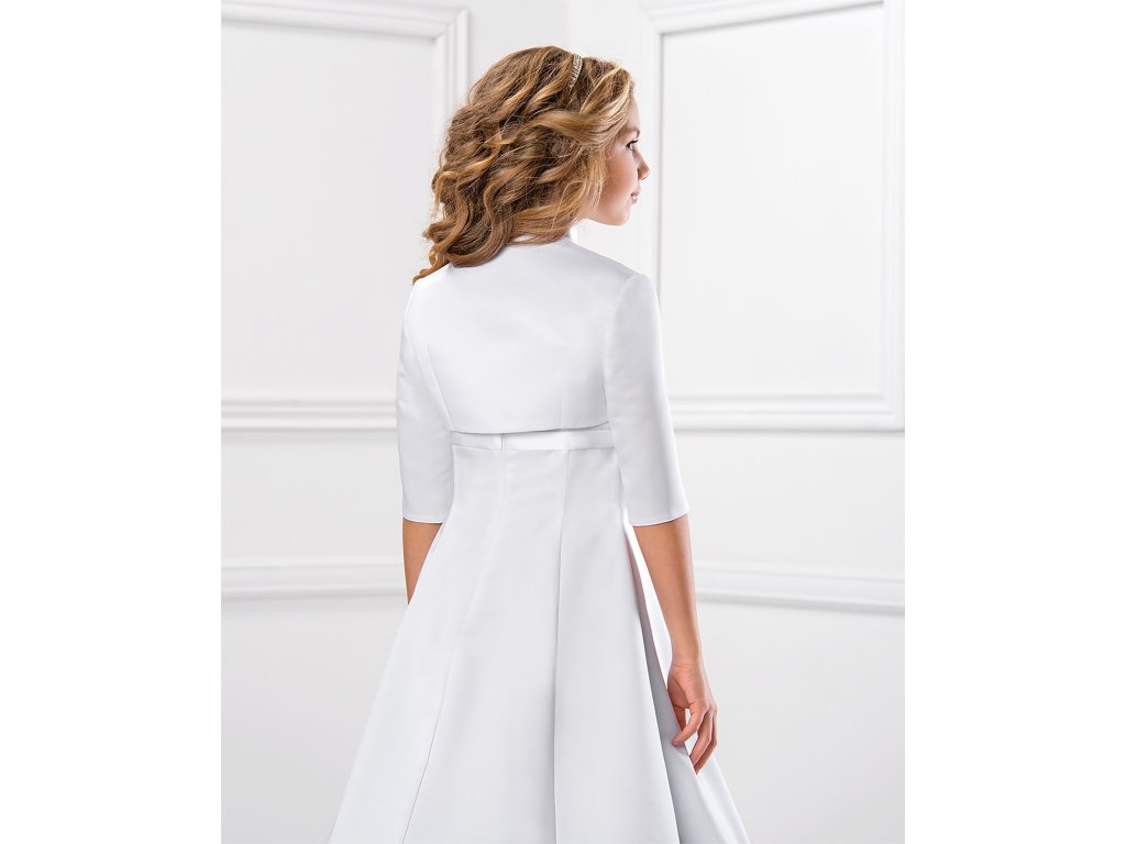 Detské saténové svadobné bolerko s vyšším golierom a 3/4 rukávom.