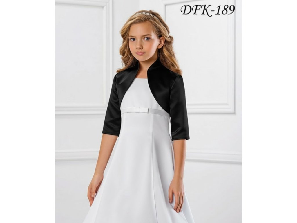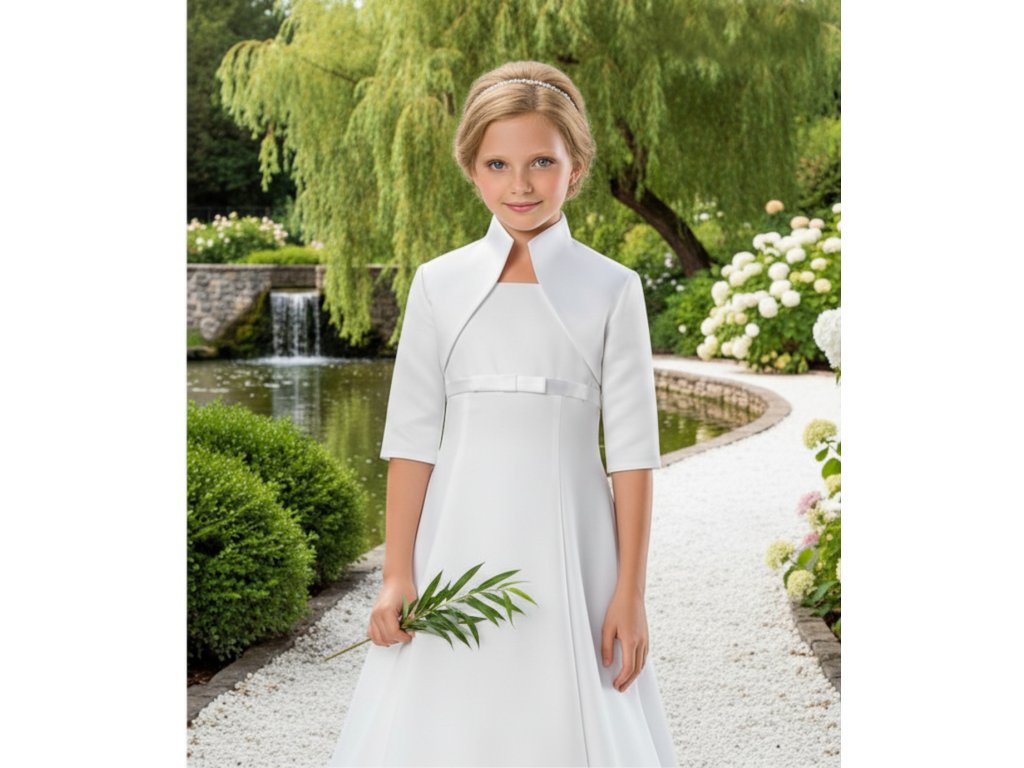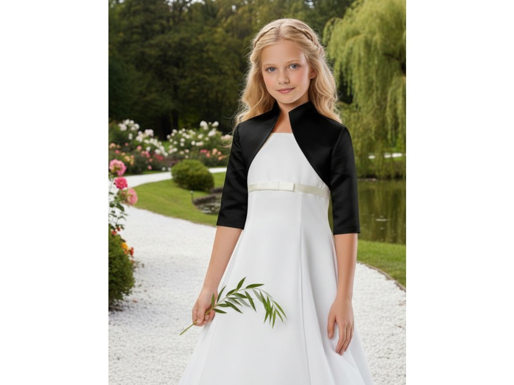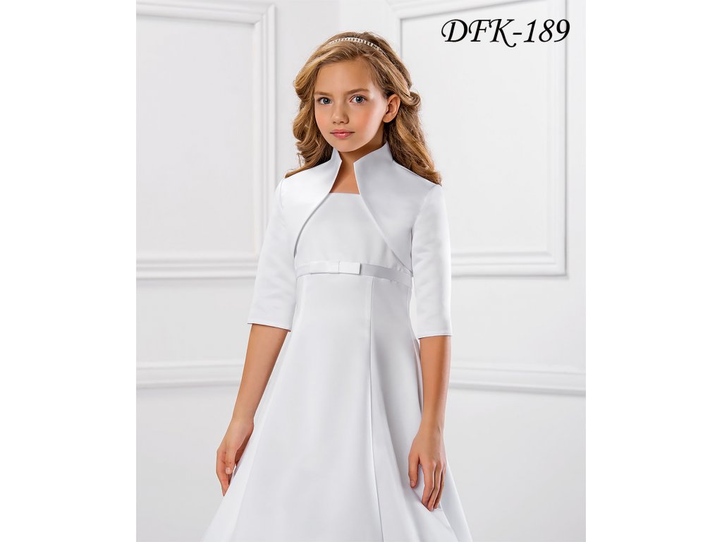 Detské saténové svadobné bolerko s vyšším golierom a 3/4 rukávom.