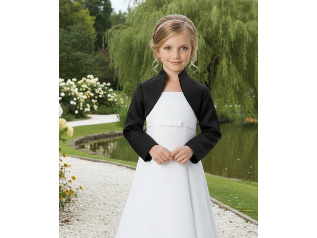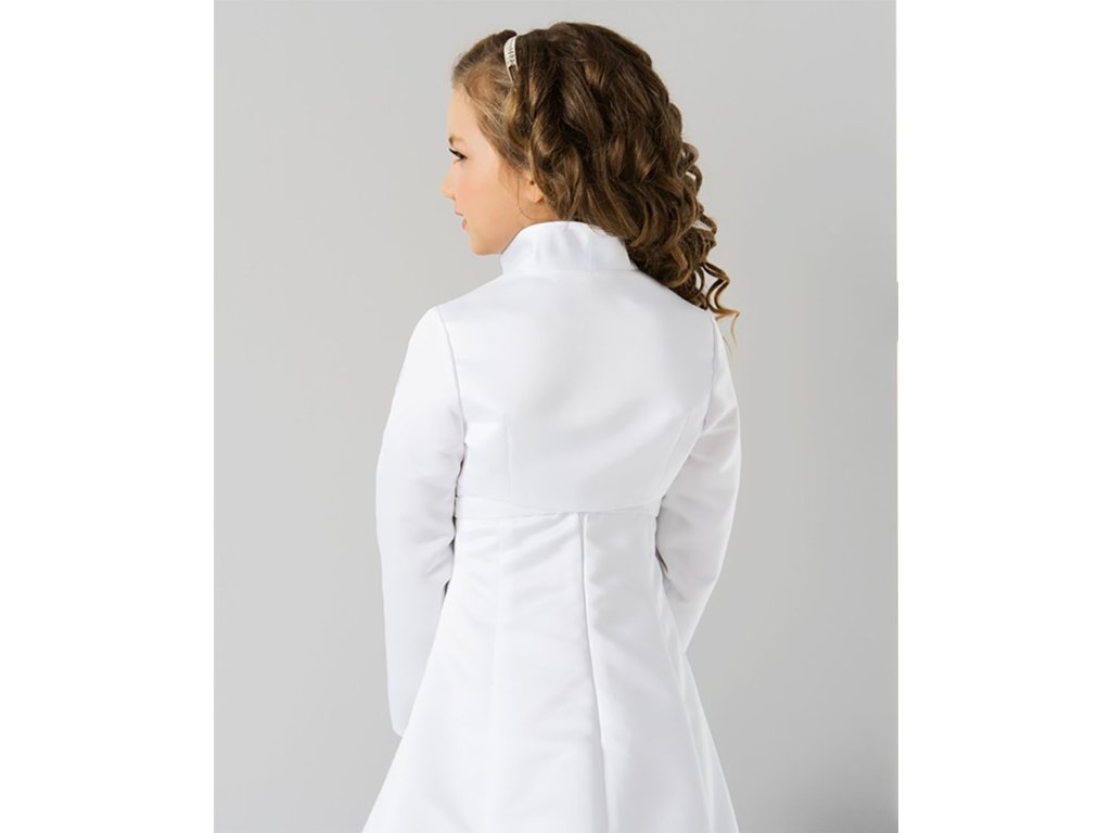 Detské saténové svadobné bolerko s vyšším golierom a dlhým rukávom.
