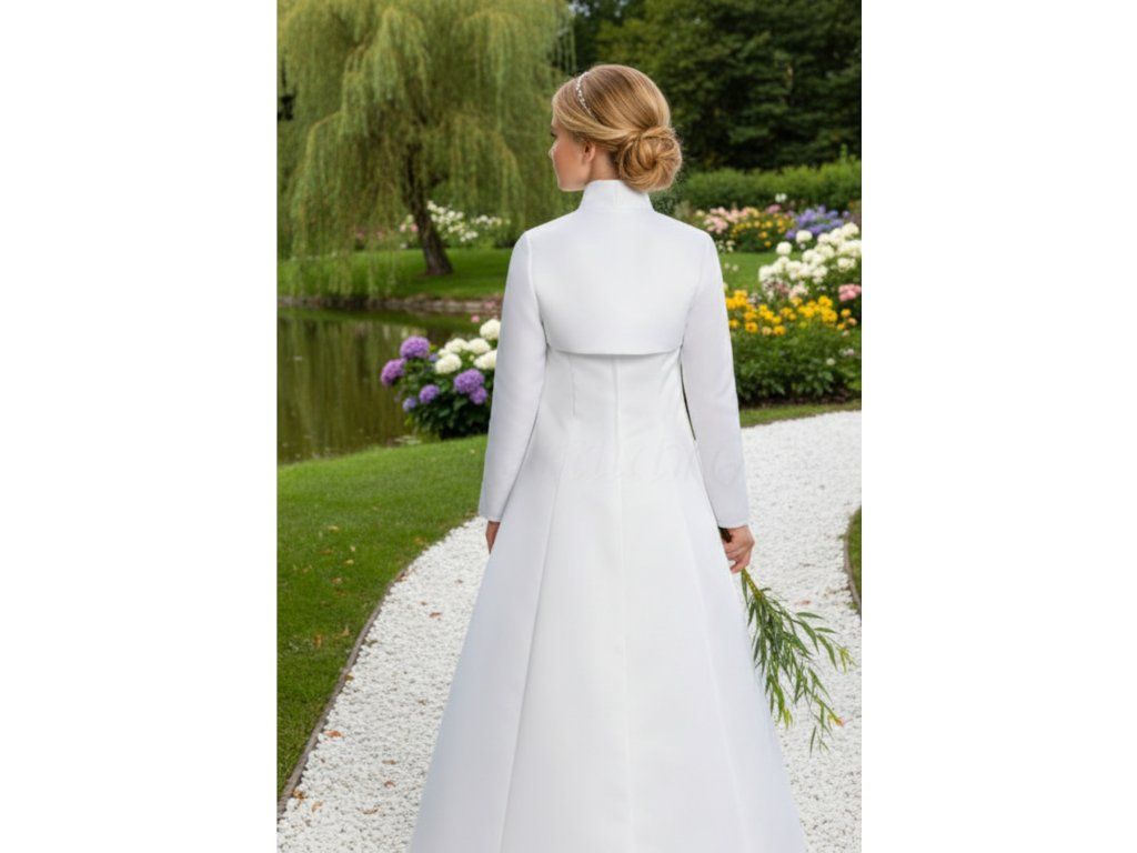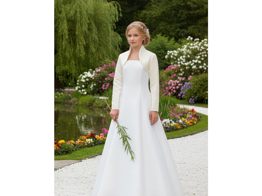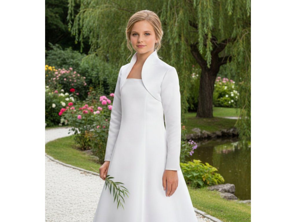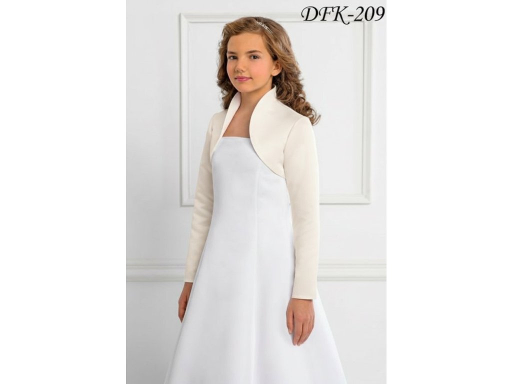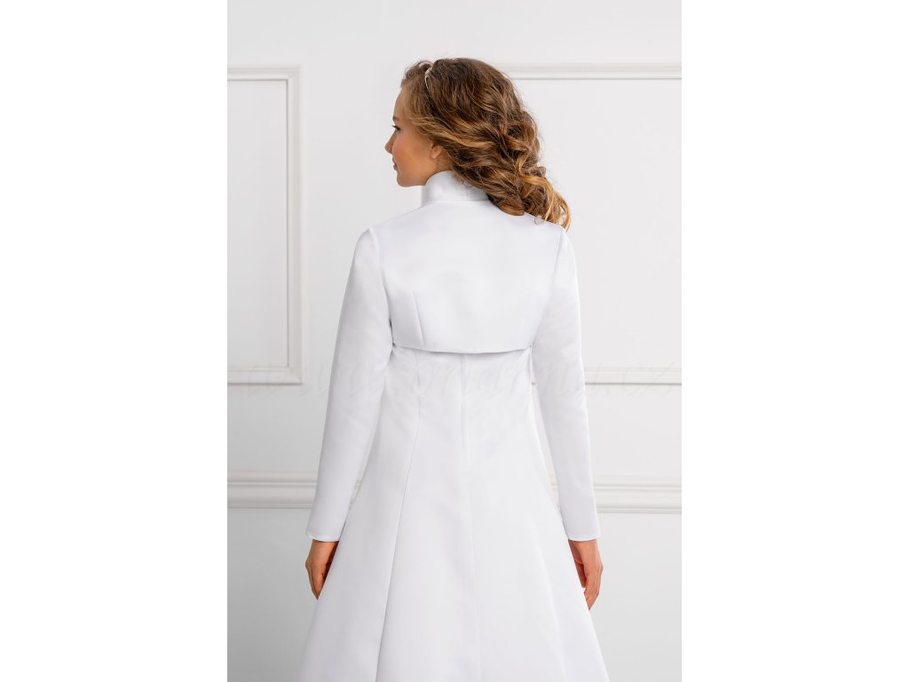 Detské saténové svadobné bolerko s vyšším golierom a dlhými rukávmi.