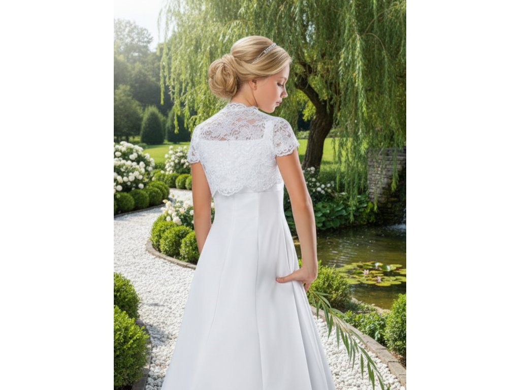 Detské svadobné bolerko z kvetinovej čipky.