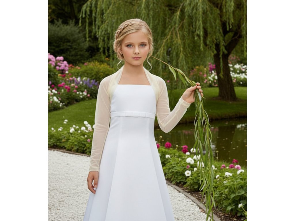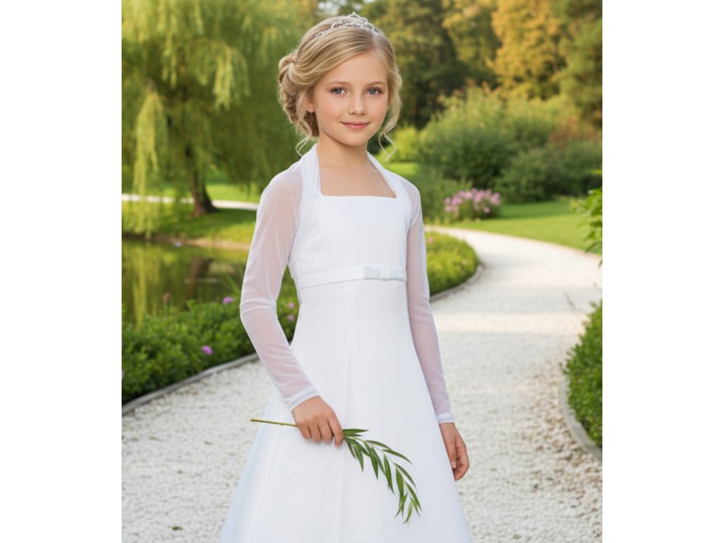 Detské svadobné tylové bolerko s dlhým rukávom DFK-70