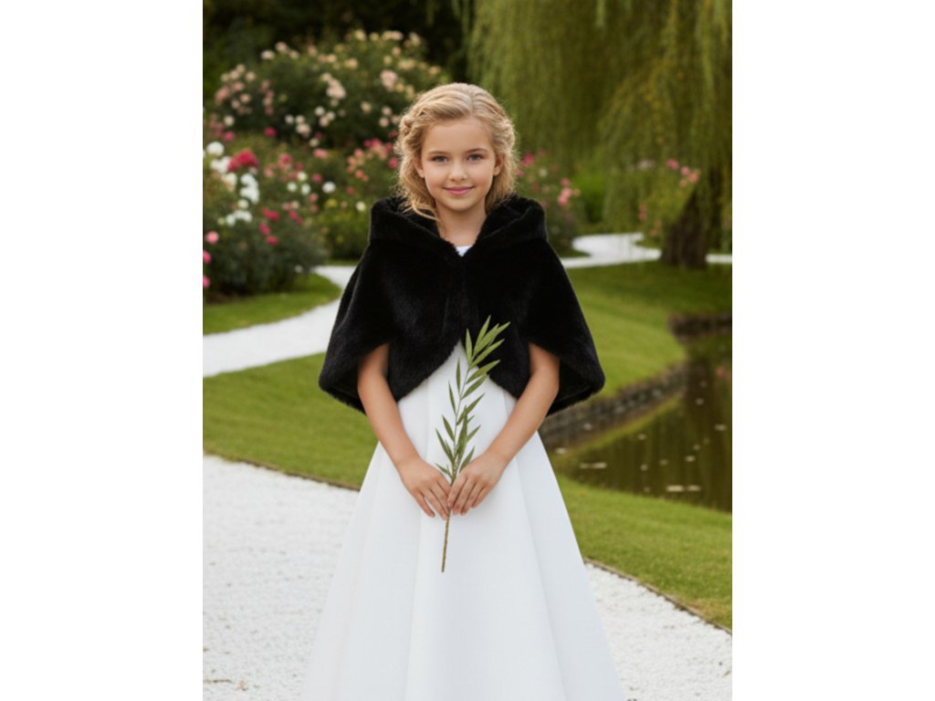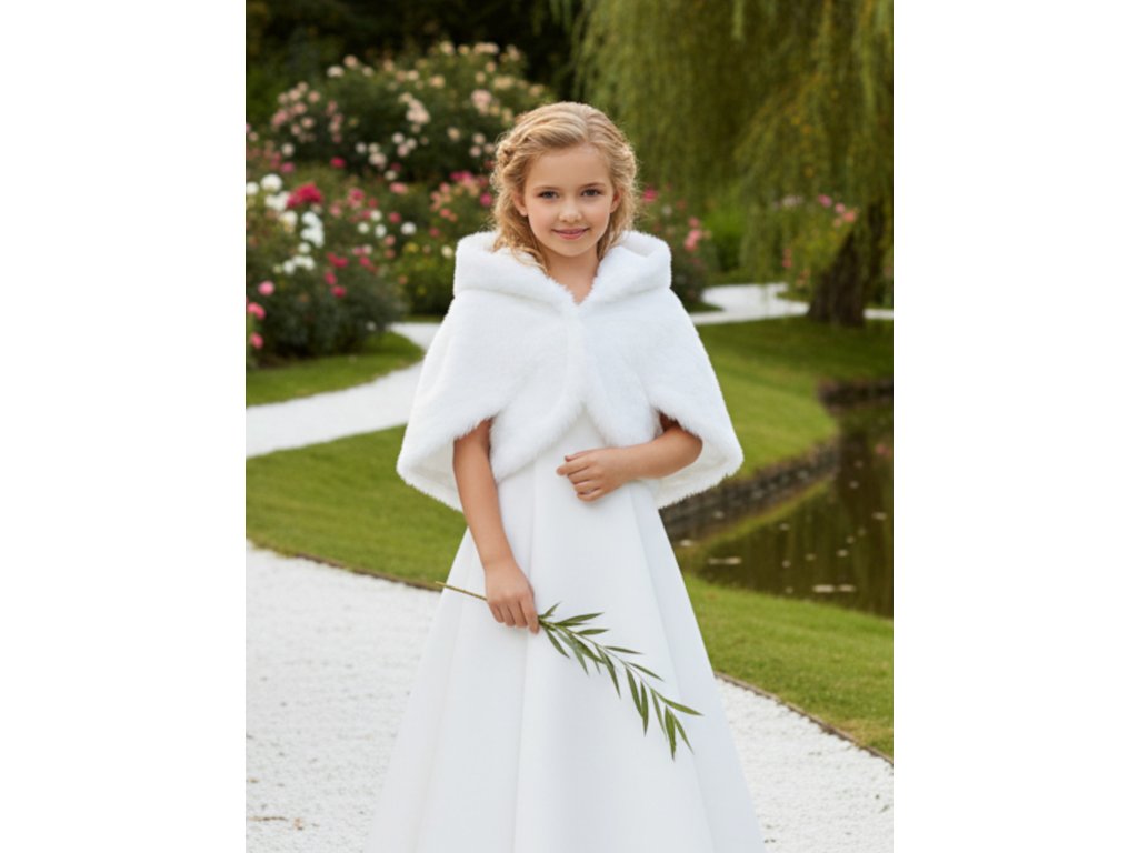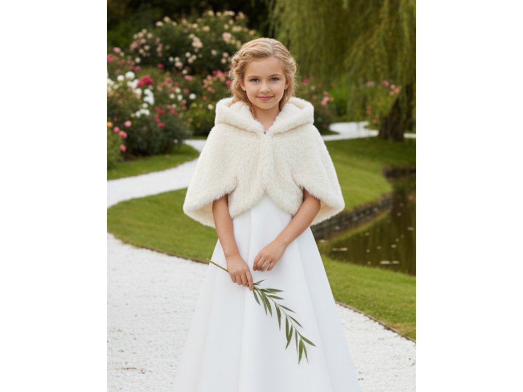 Detská kožušinová svadobná pelerínka s kapucňou.