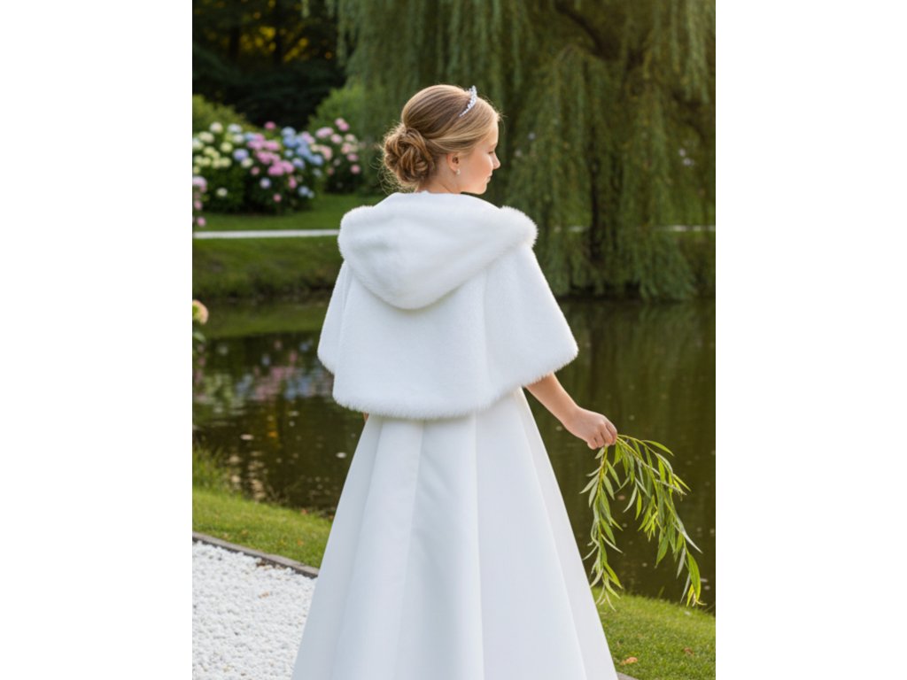 Detská kožušinová svadobná pelerínka s kapucňou DFK-80