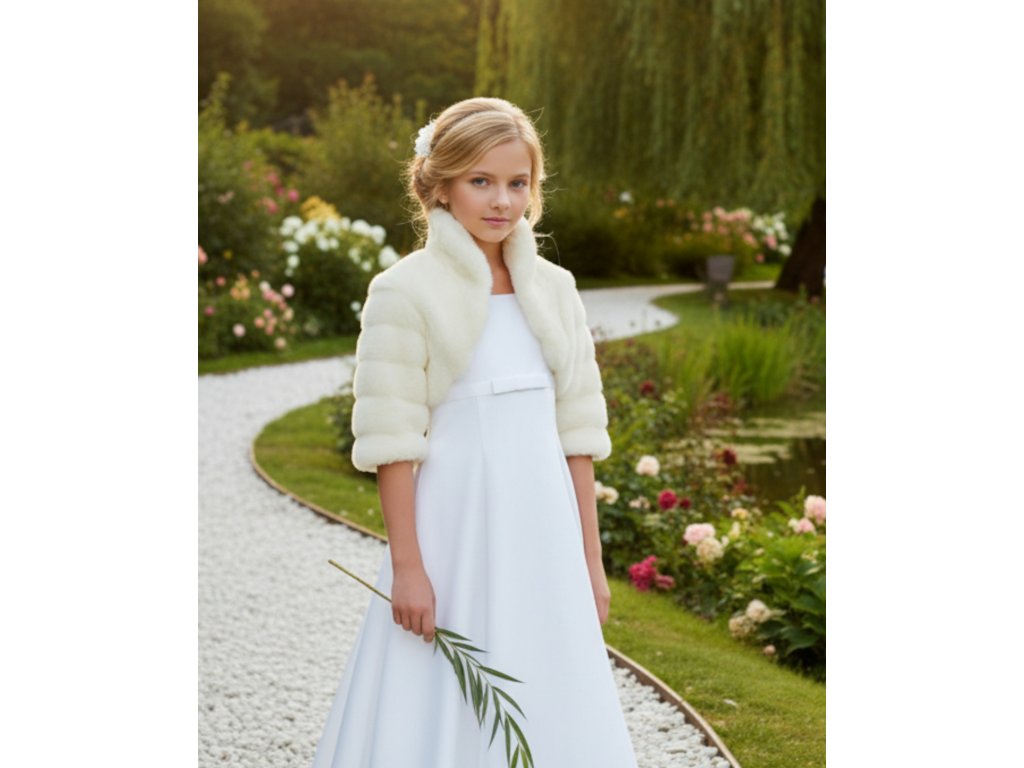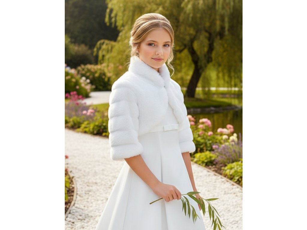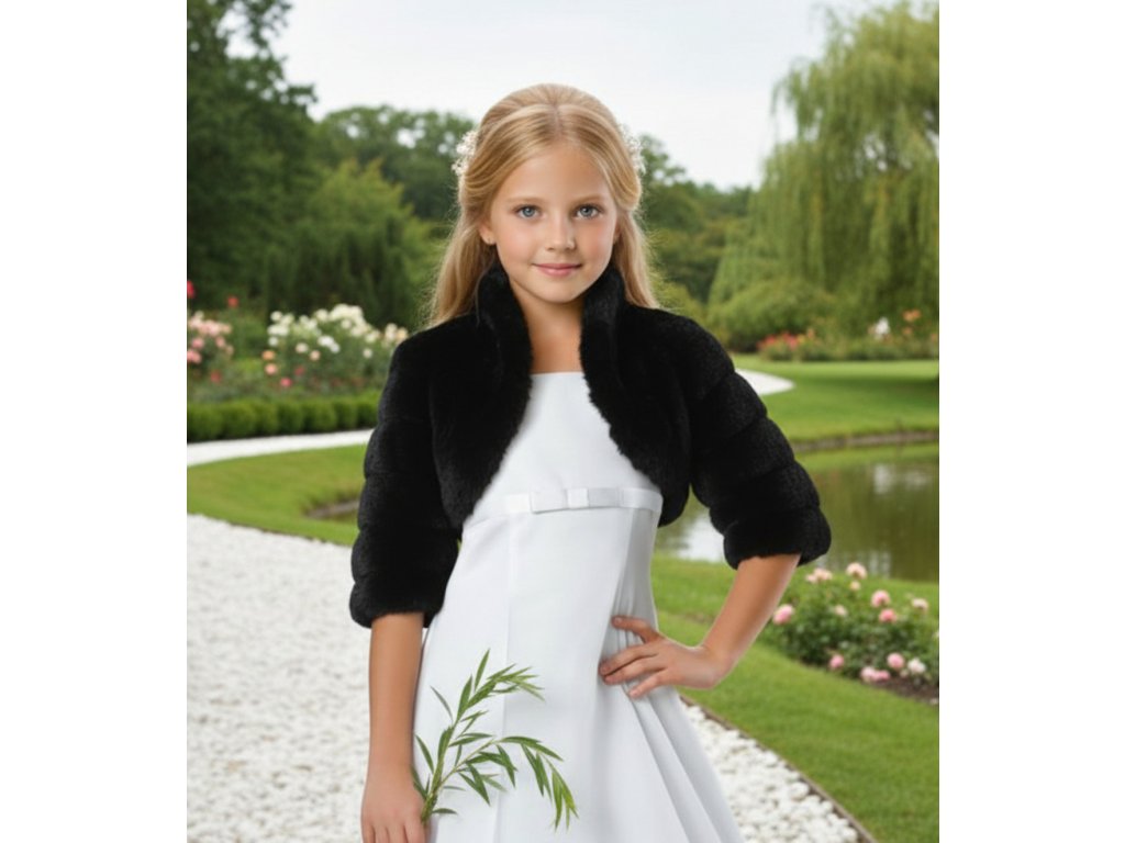 Detské kožušinové svadobné bolerko s 3/4 rukávom.