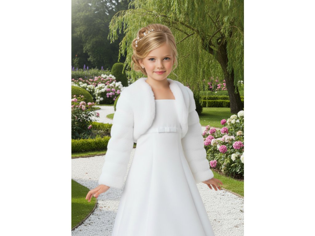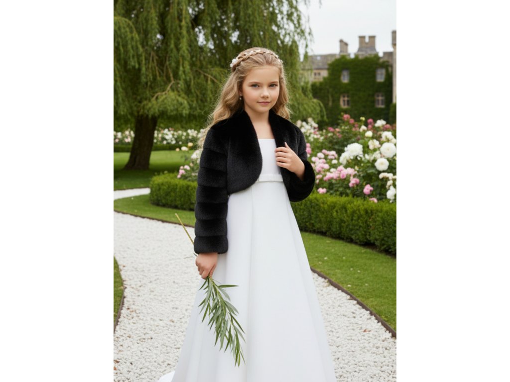 Detské kožušinové svadobné bolerko s dlhým rukávom.