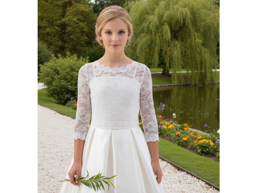 Detské svadobné bolerko s kvetinovou čipkou: DBK-93