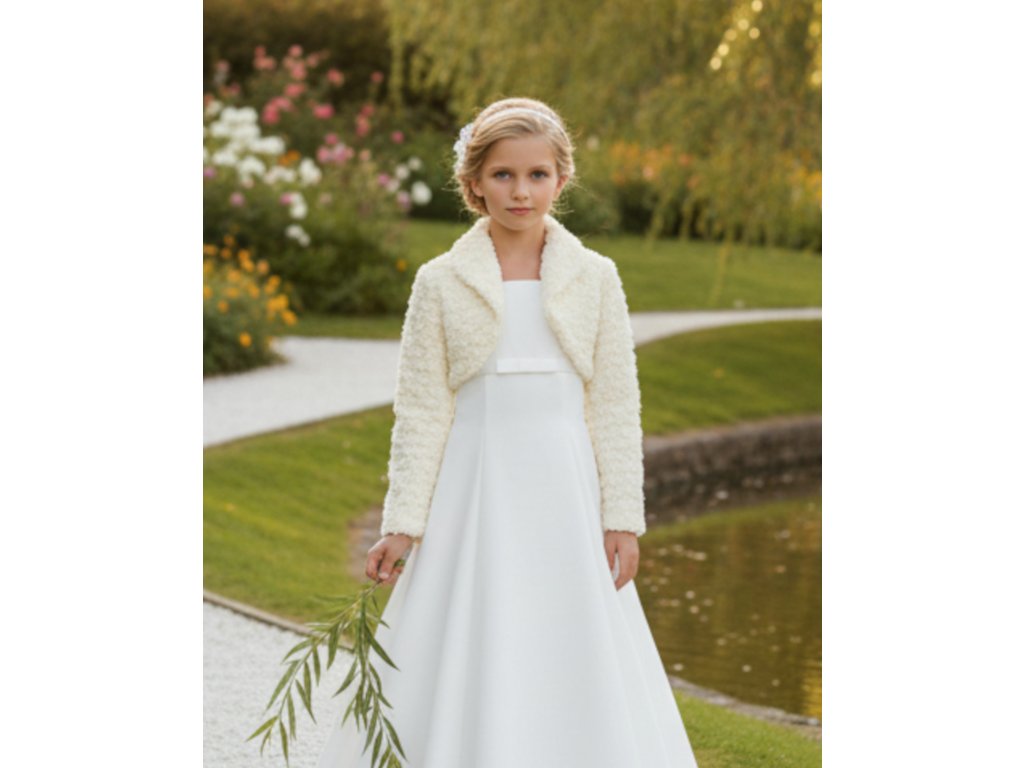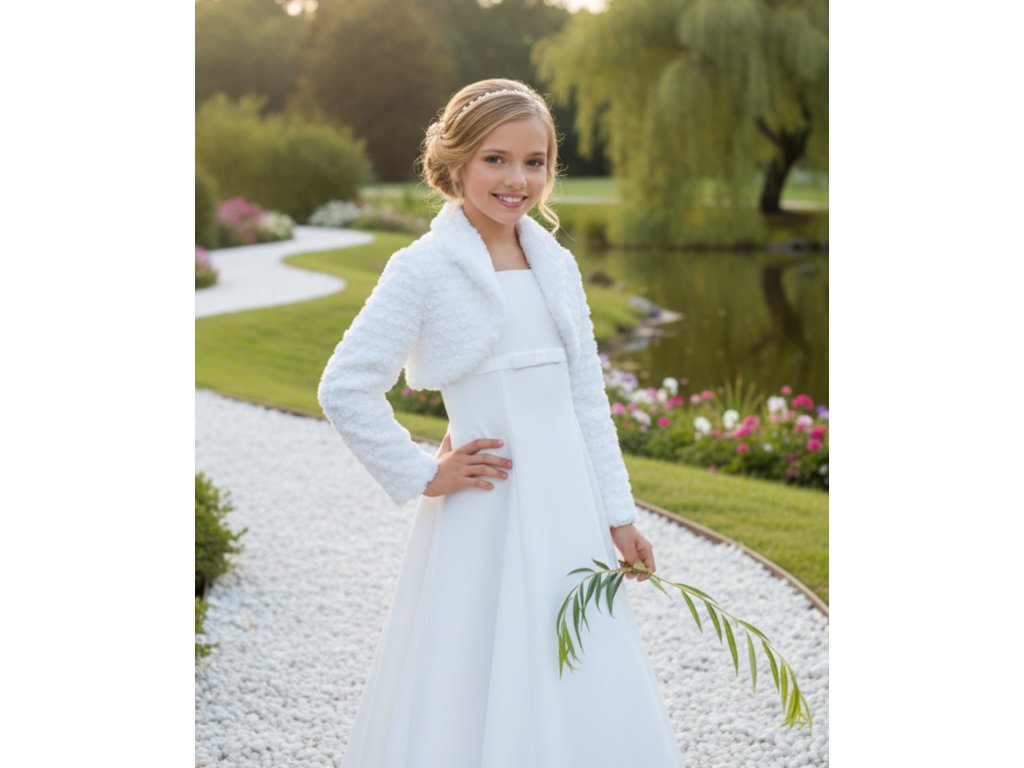 Detské svadobné bolerko zo vzorované kožušiny.