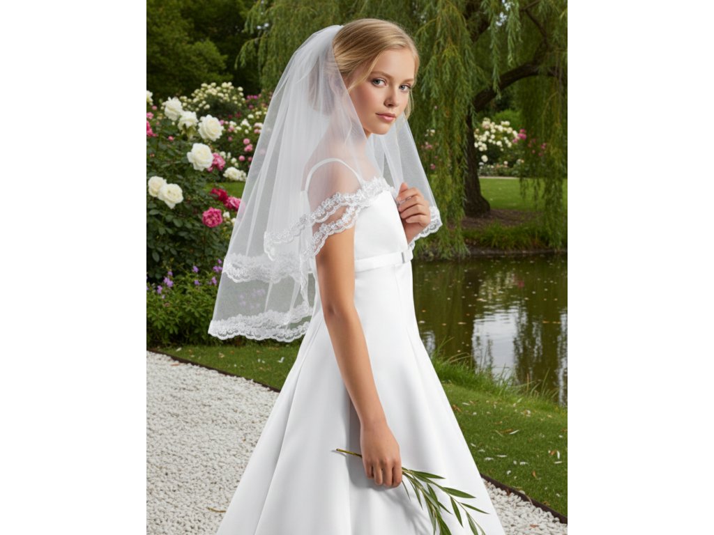 Detský dvojvrstvový svadobný závoj lemovaný čipkou.