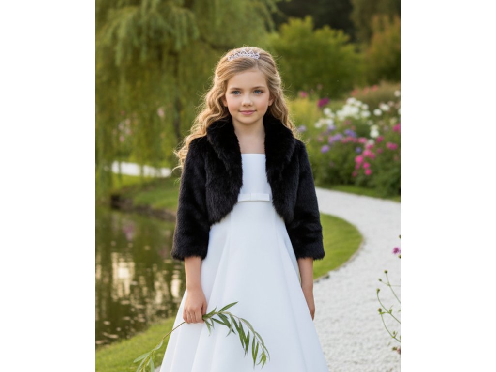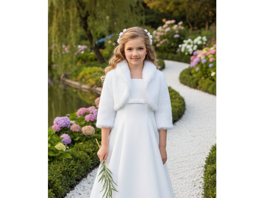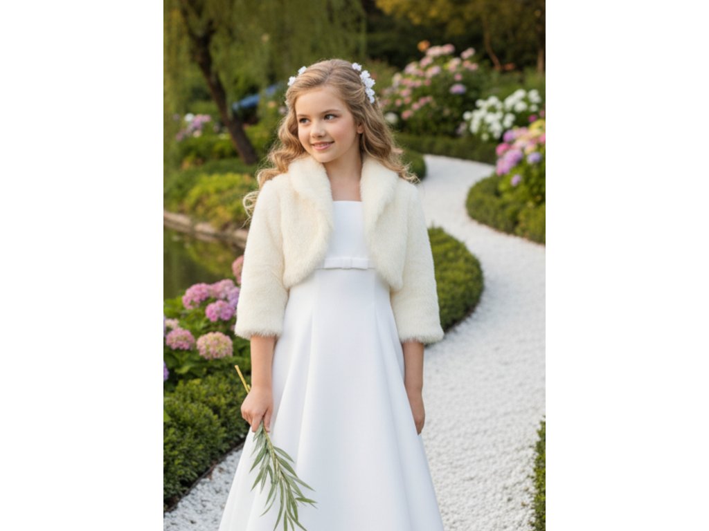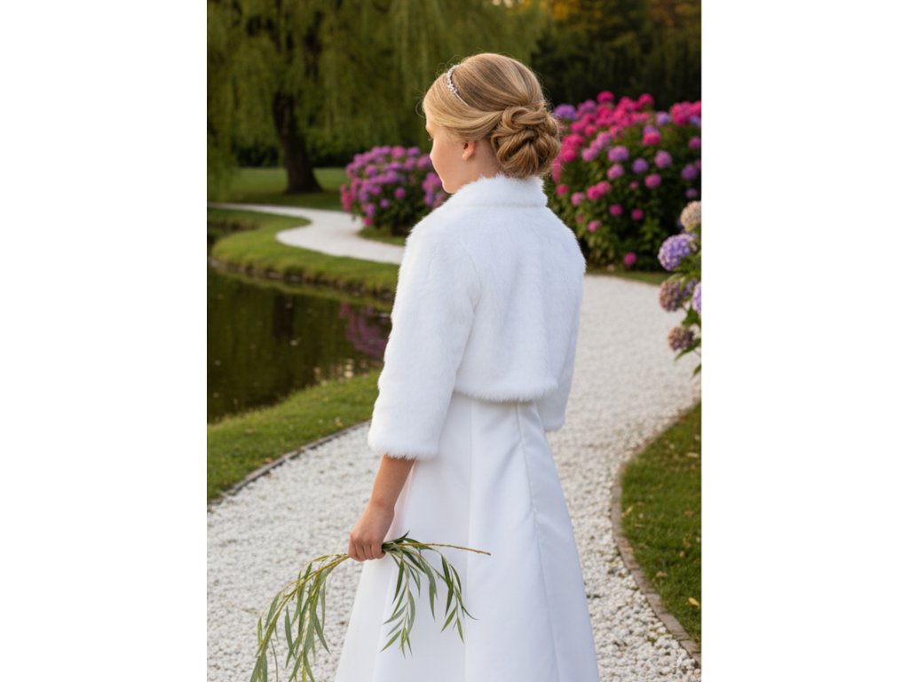 Detský svadobný kožúšok s 3/4 rukávom DFK-57