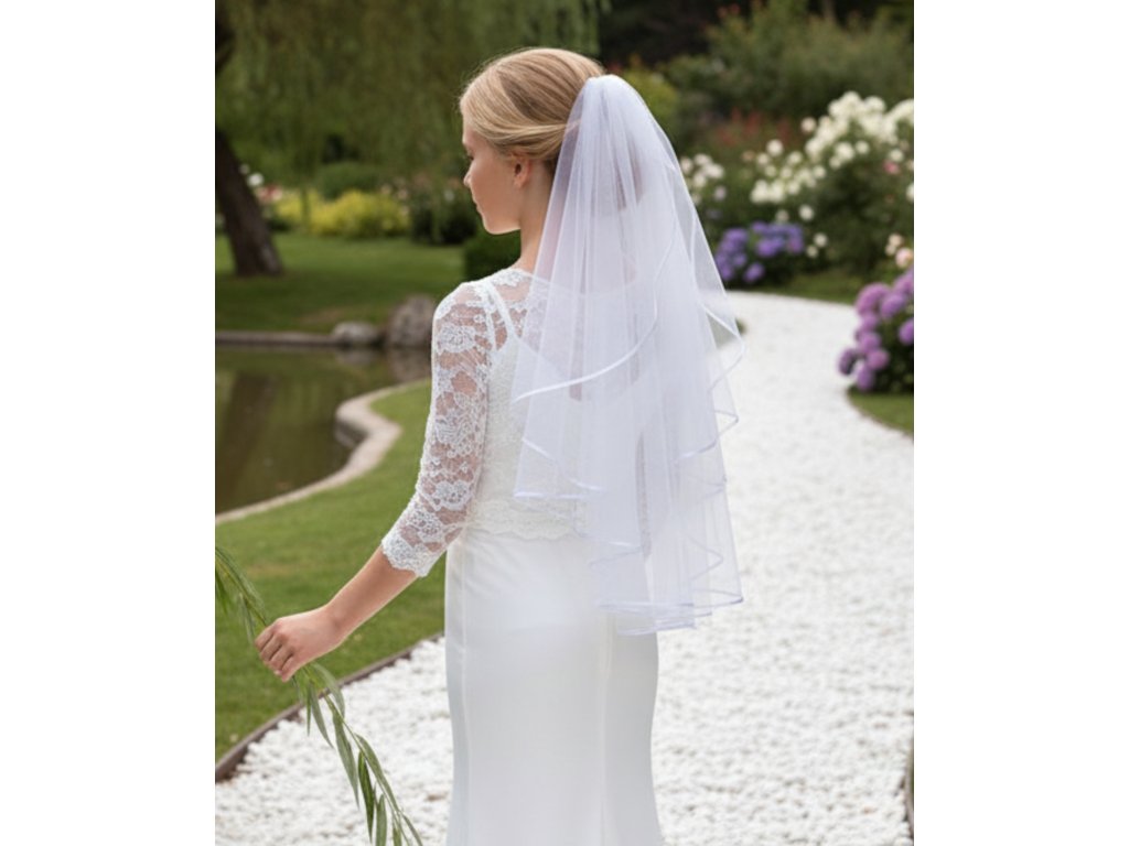 Jednoduchý detský svadobný závoj so saténovým lemom.