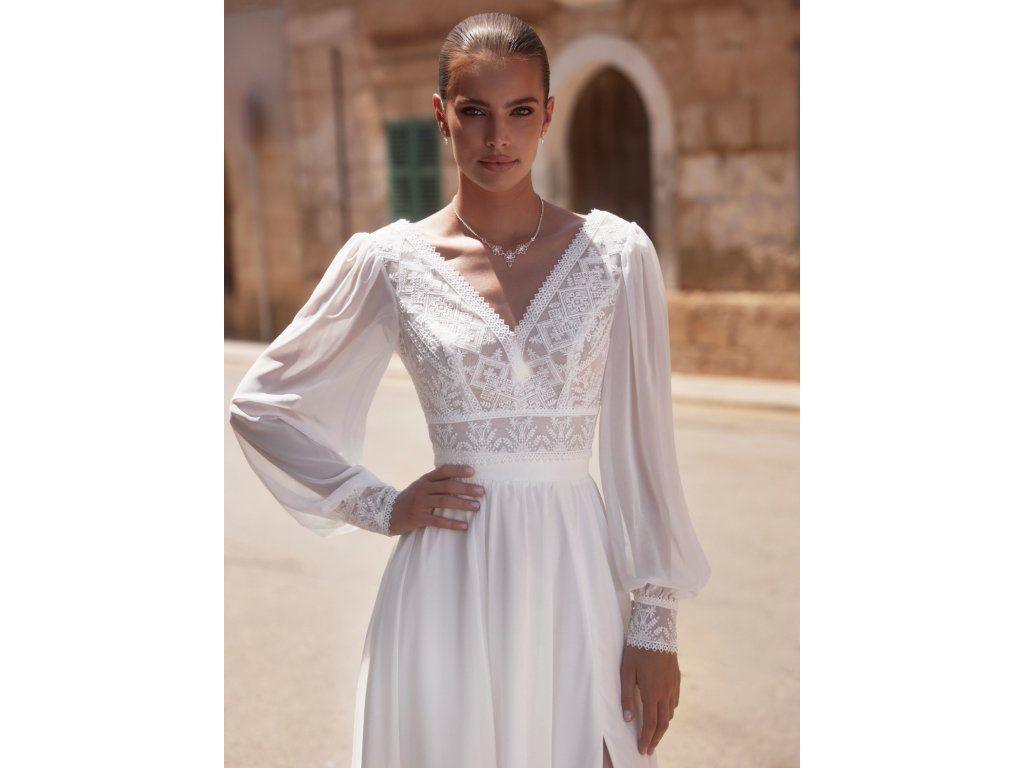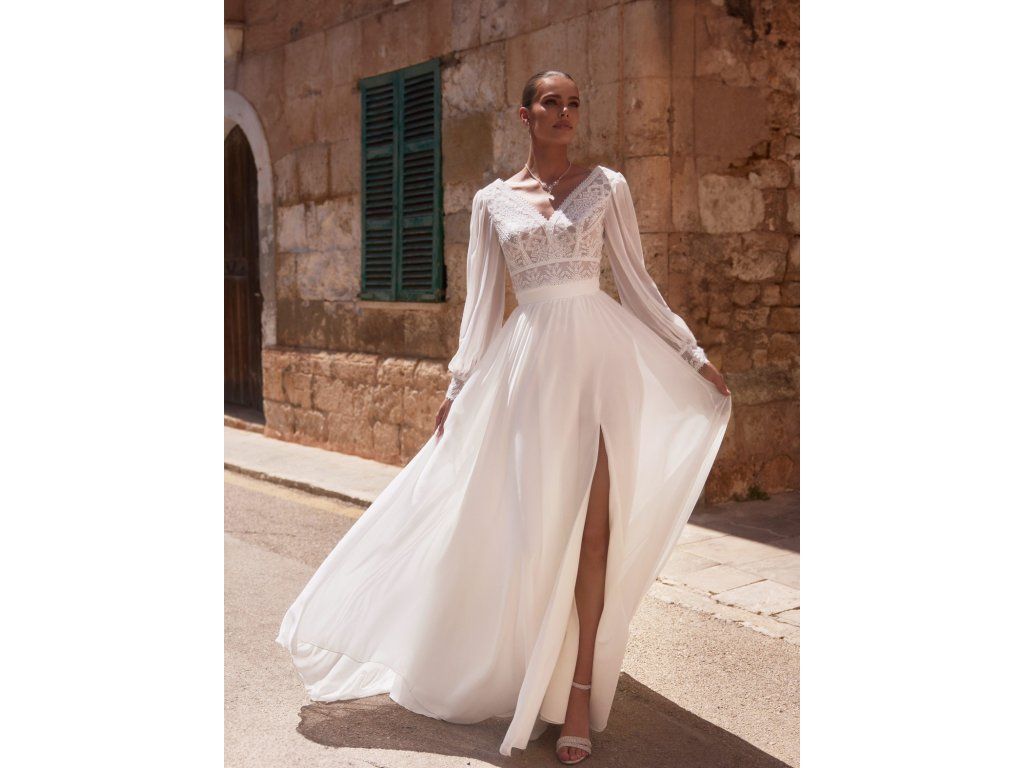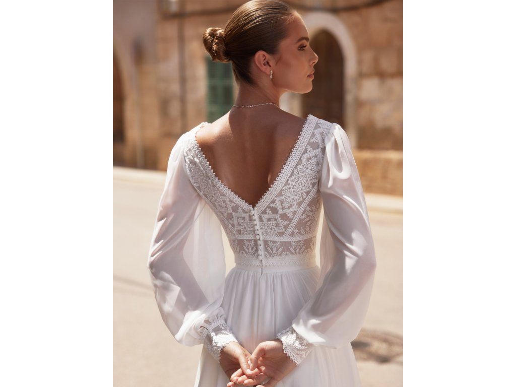 Svadobný top je vyrobený z luxusnej svadobnej čipky a má šifónové rukávy.
