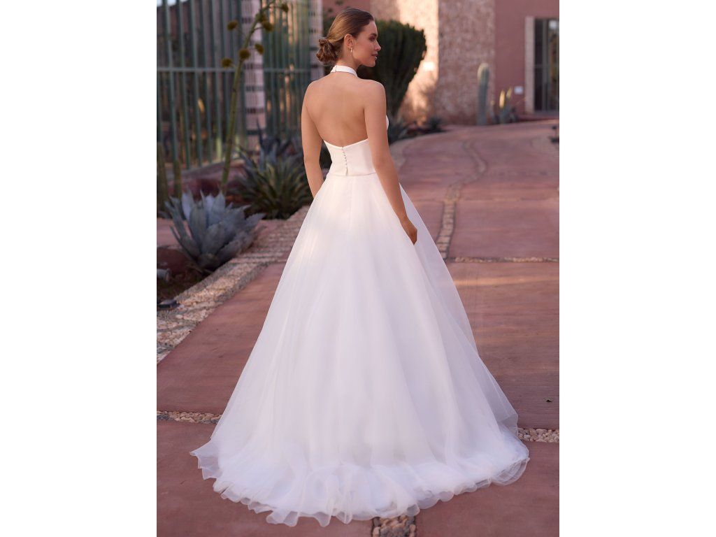 Dlhá organzová svadobná sukňa.