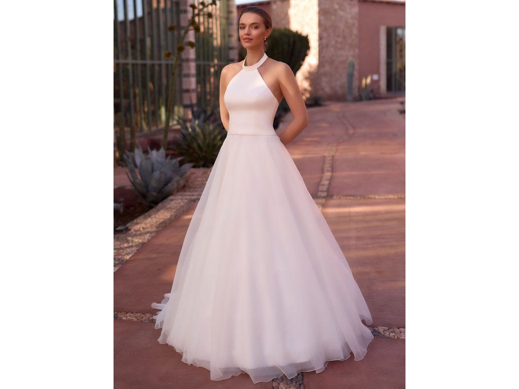 Hornú časť šiat tvorí svadobný top z elastického krep saténu.