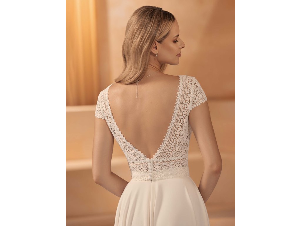 Horná časť šiat je tvorená celočipkovým svadobným topom.