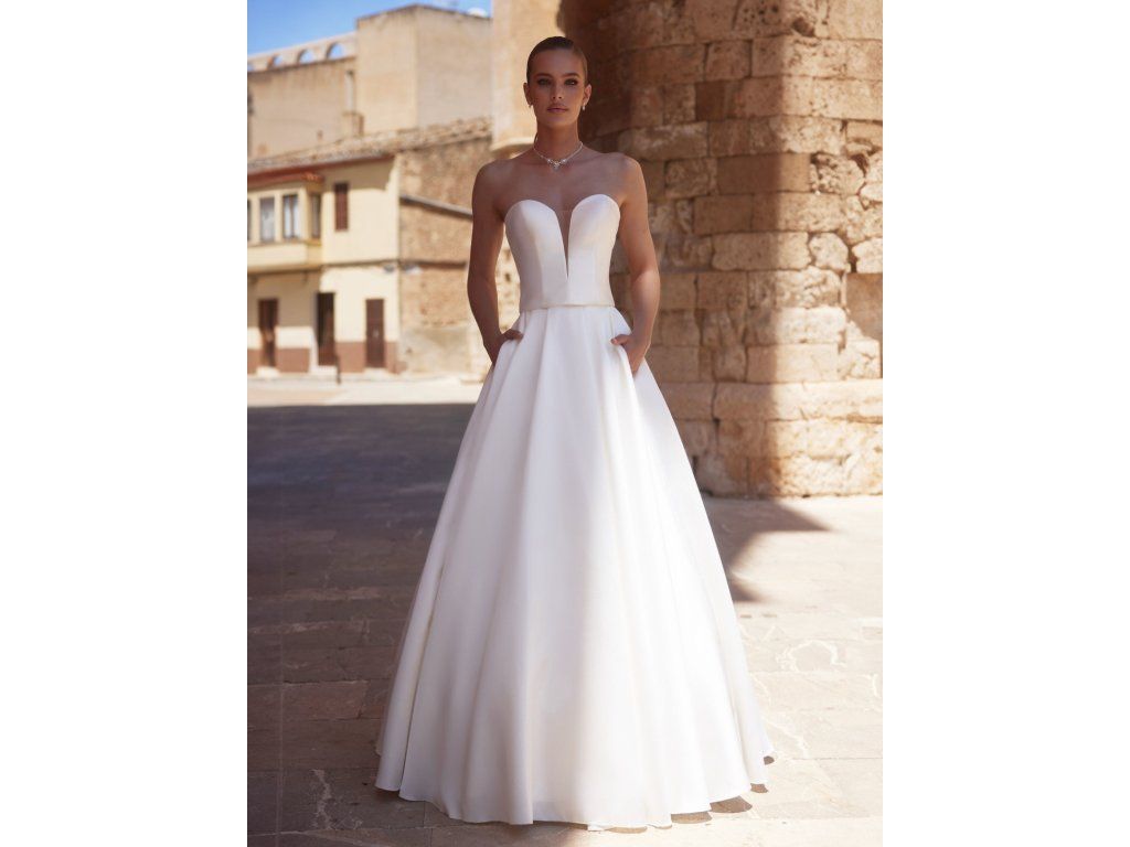 Dlhá svadobná sukňa s vreckami.
