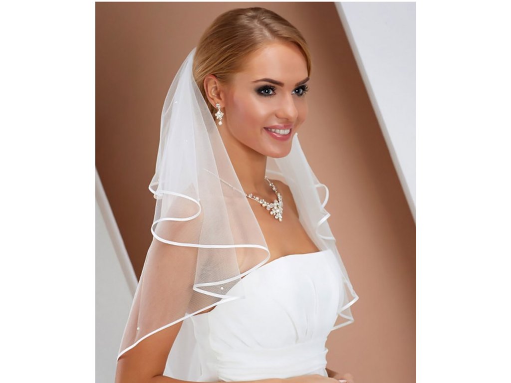 Svadobný tylový závoj so saténovým lemom, zdobený 30 perličkami.
