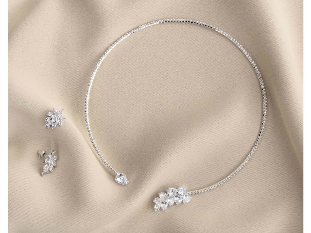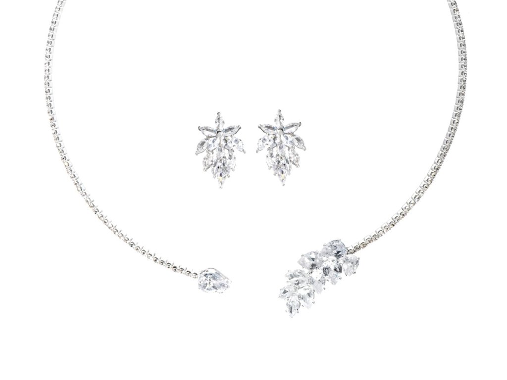 Elegantná svadobná sada šperkov - náušníc a náhrdelníka, zdobená kubickými zirkónmi.