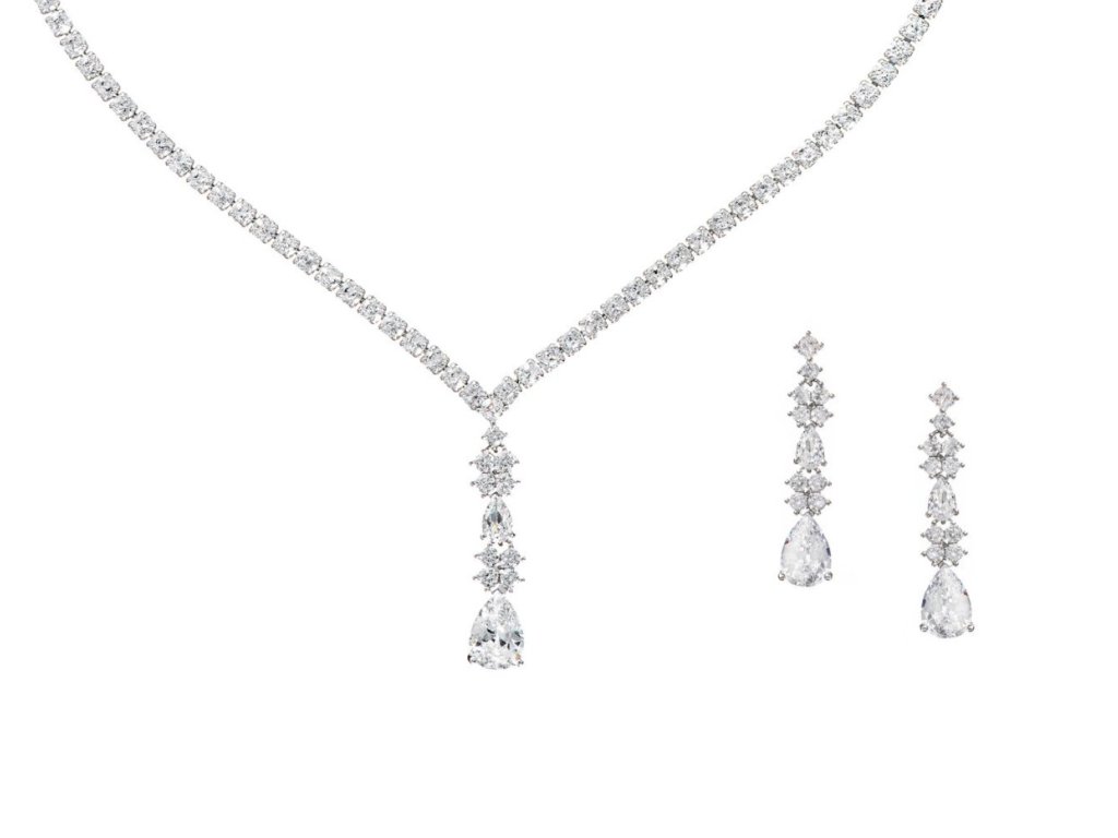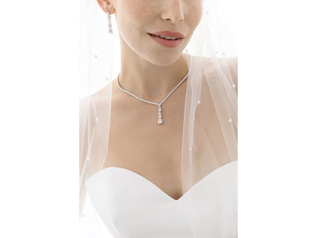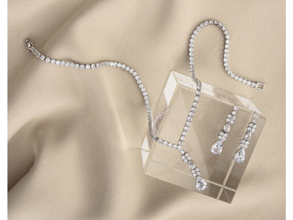 Svadobný set šperkov - náušníc a náhrdelníka, zdobený kubickými zirkónmi.