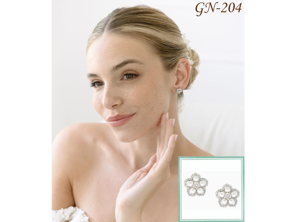 Perlové svadobné náušnice v tvare kvetu GN-204