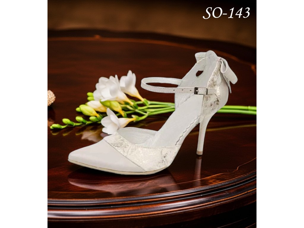Kožené svadobné topánky - ecru/zlaté: vel. 38, dopredaj