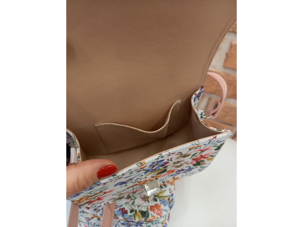 Torebka má odnímateľný pásik, zapínanie je na kovovú sponu.