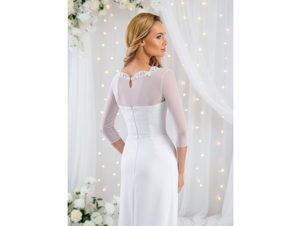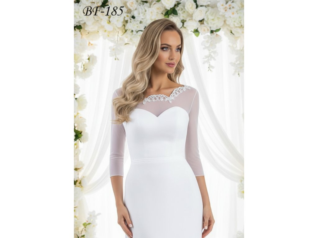 › Svadobné bolerka › Bolerko lemované čipkou - biele: BF-185, veľ. S/M