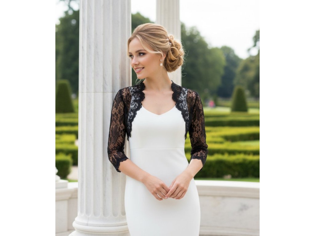 › Svadobné bolerka › Čierne čipkované bolerko BF-169