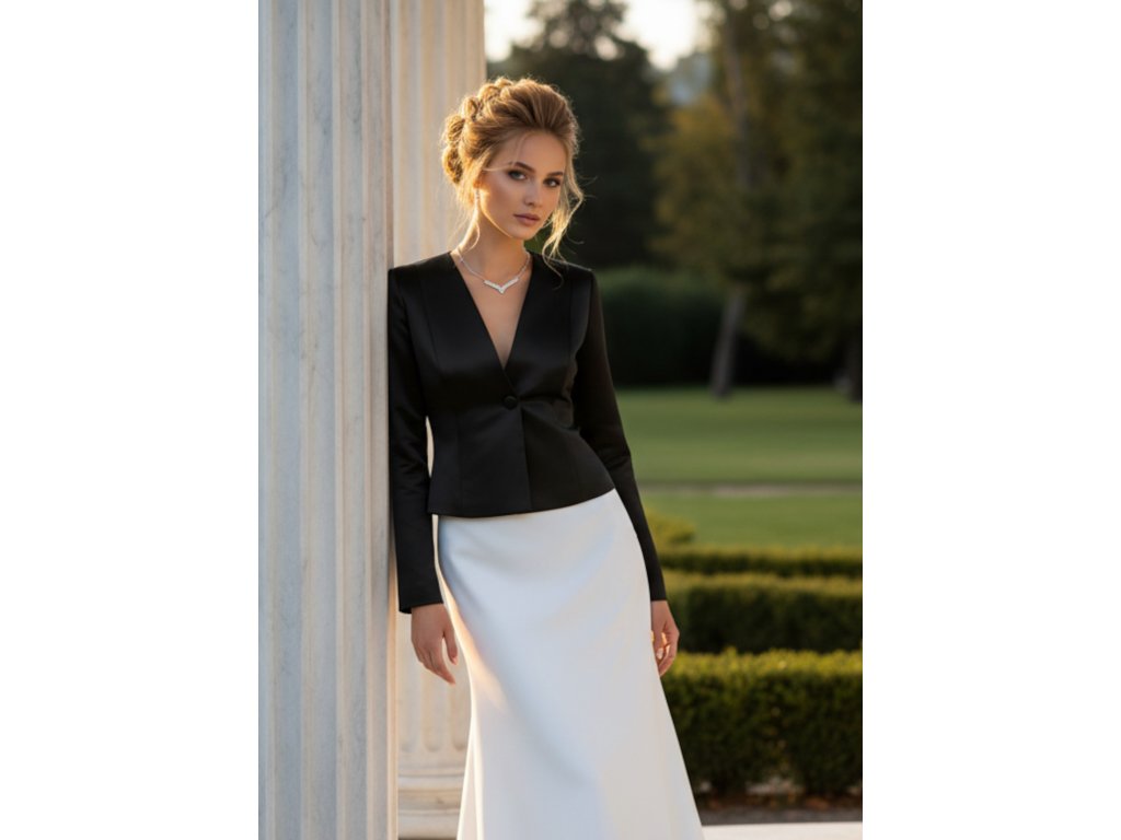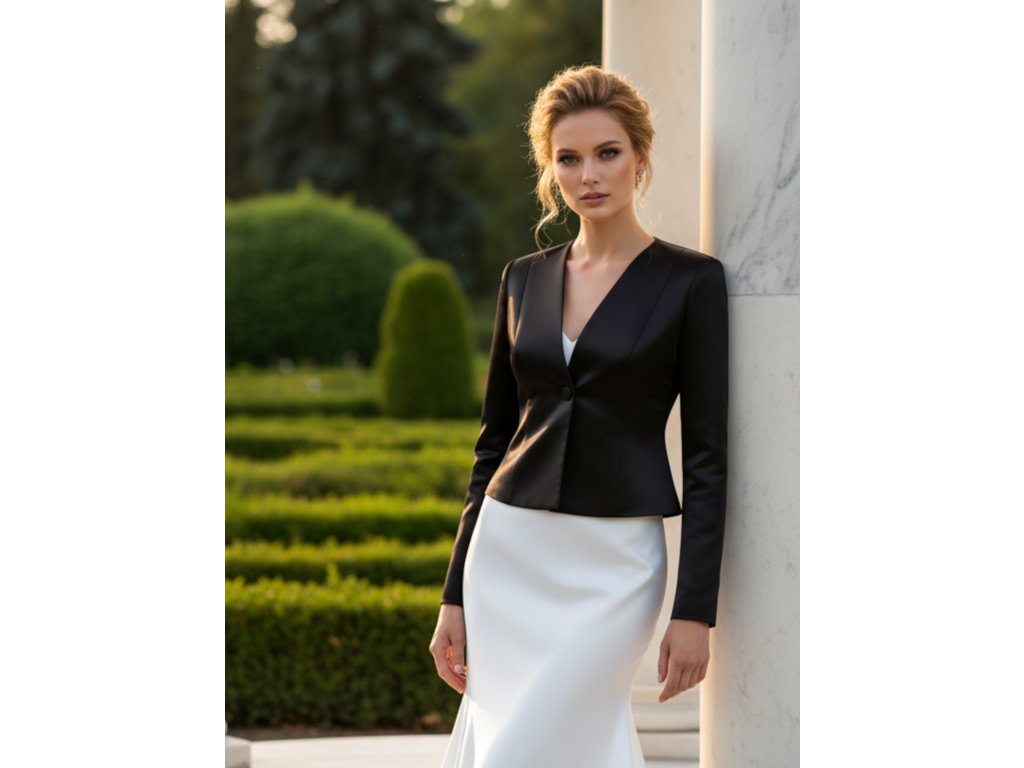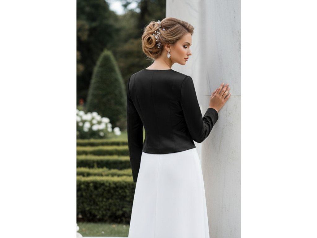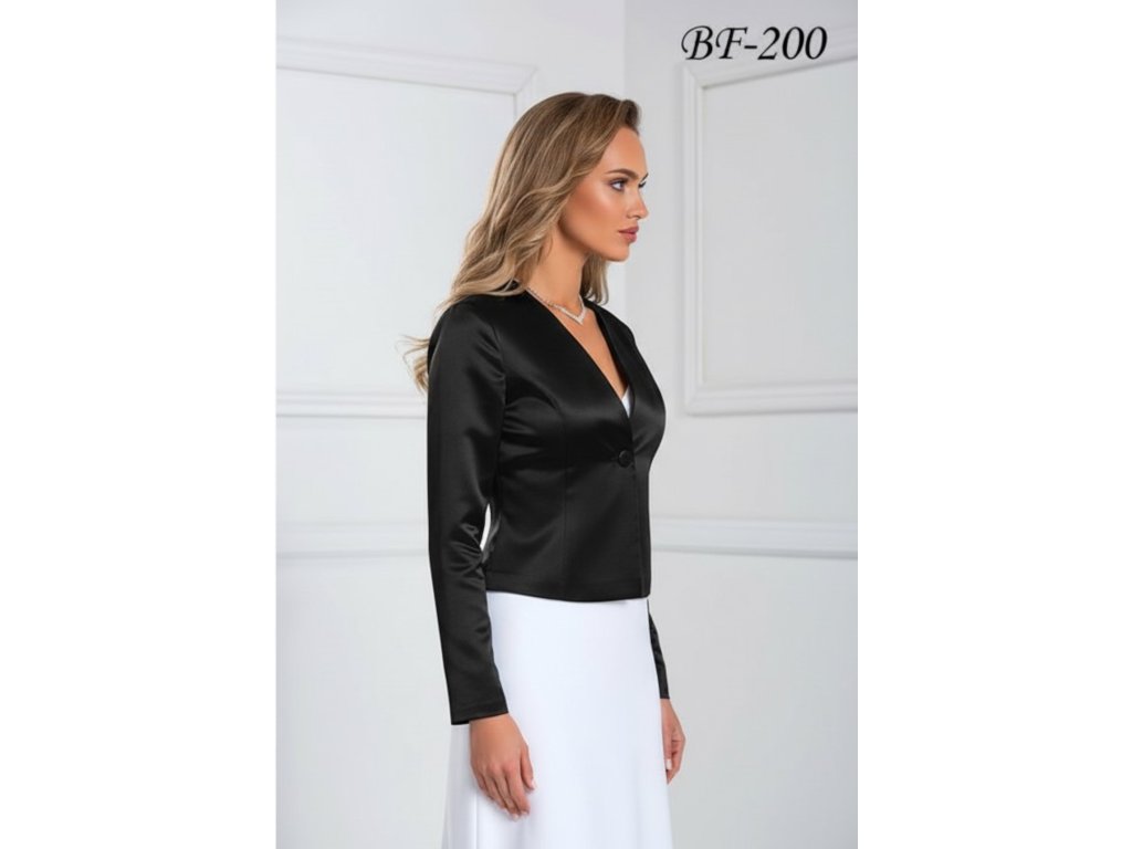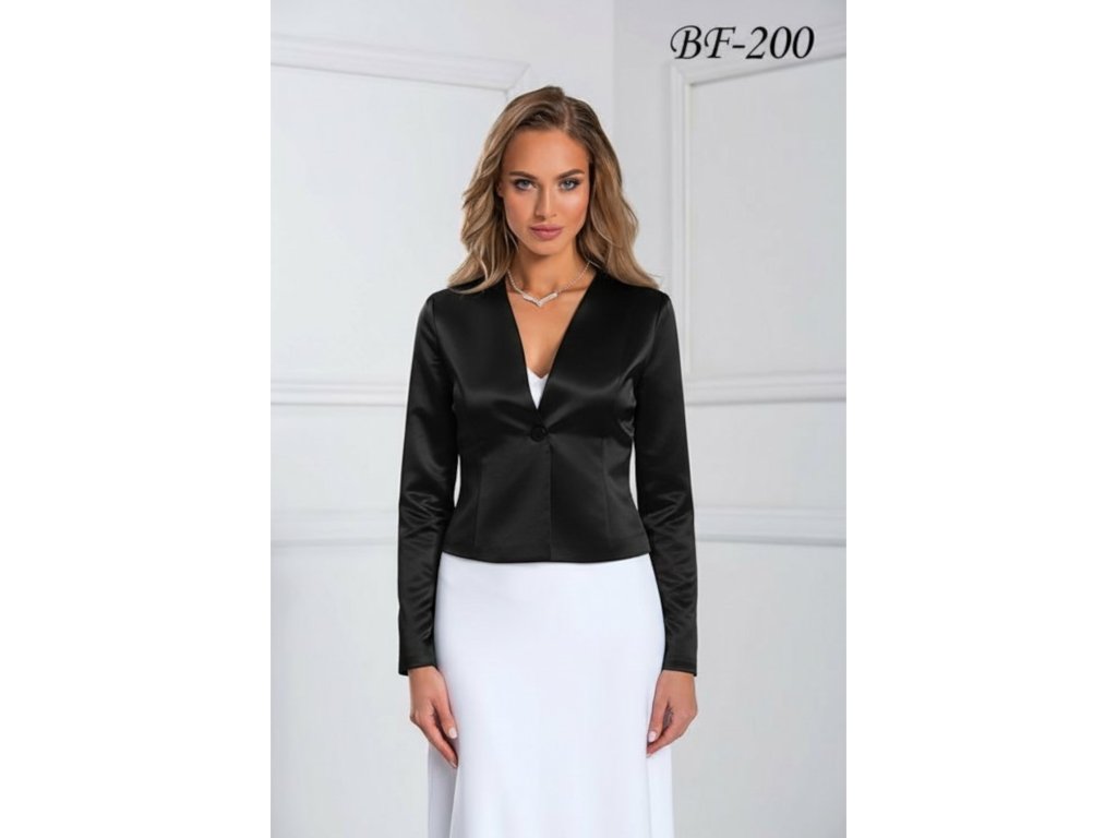 › Svadobné bolerka › Čierny dámsky saténový kabátik BF-200