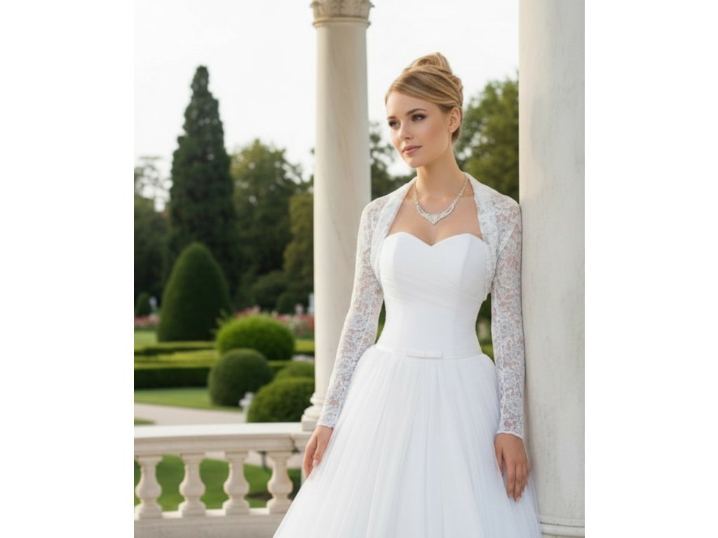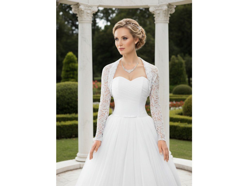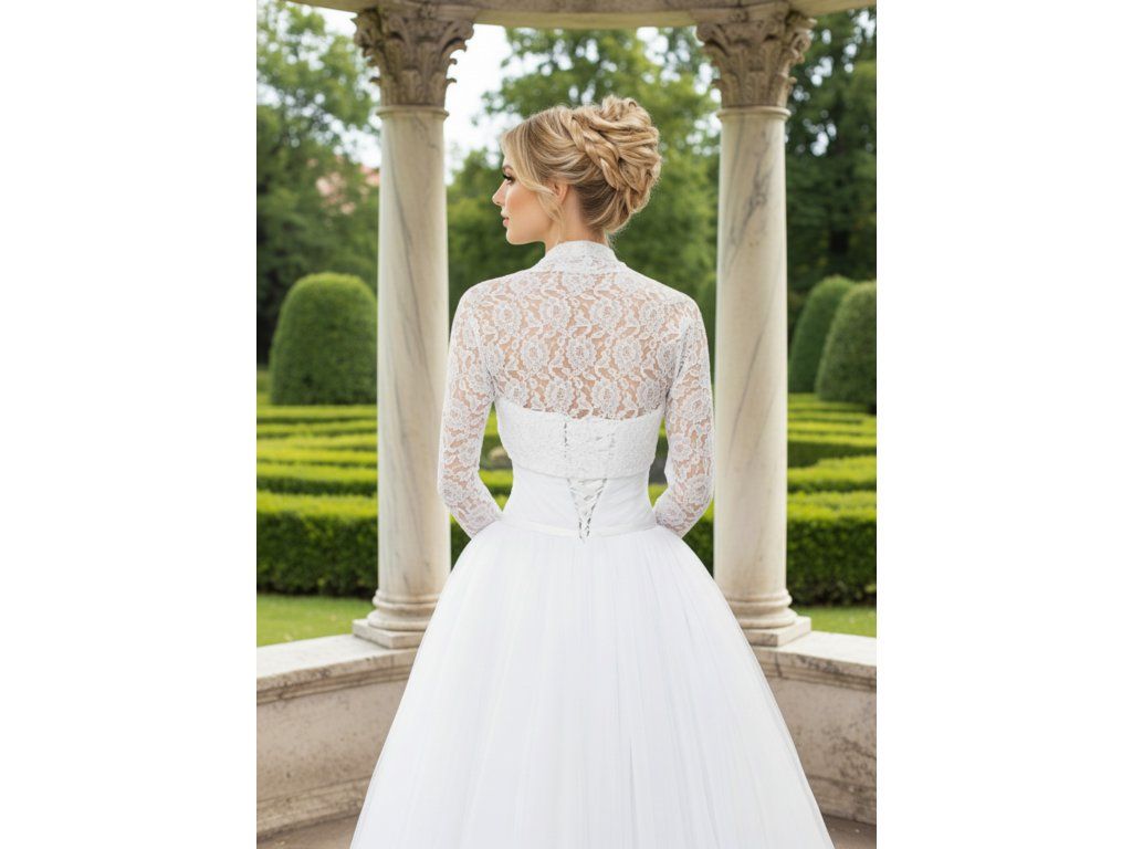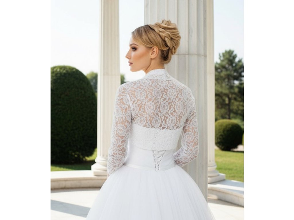 › Svadobné bolerka › Čipkované bolerko na svadobné šaty - biele: BF-147