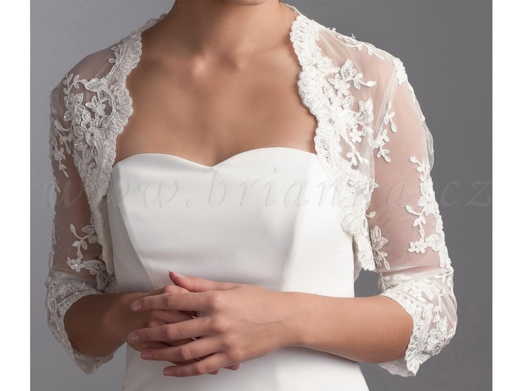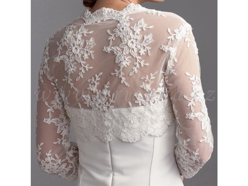 Čipkované svadobné bolerko vyšívané trblietavými korálikmi.