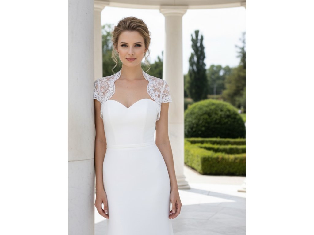 Čipkované svadobné bolerko s krátkym rukávom.
