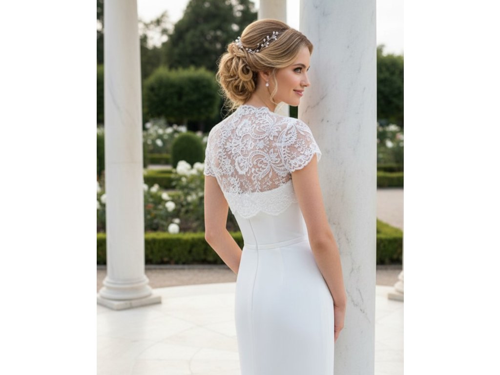Čipkované svadobné bolerko s krátkym rukávom.