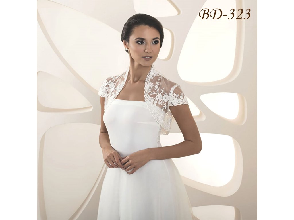 › Svadobné bolerka › Čipkované svadobné bolerko s krátkym rukávom - biele: BD-323