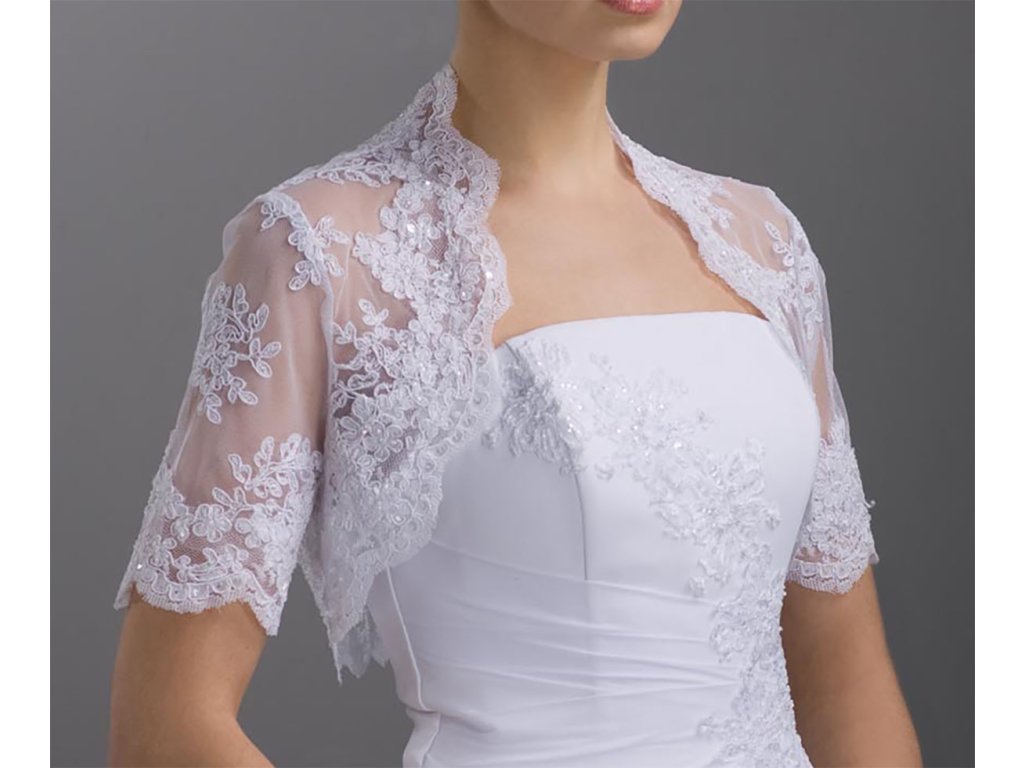 › Svadobné bolerka › Čipkové svadobné bolerko - biele: B-86, veľ. S a M