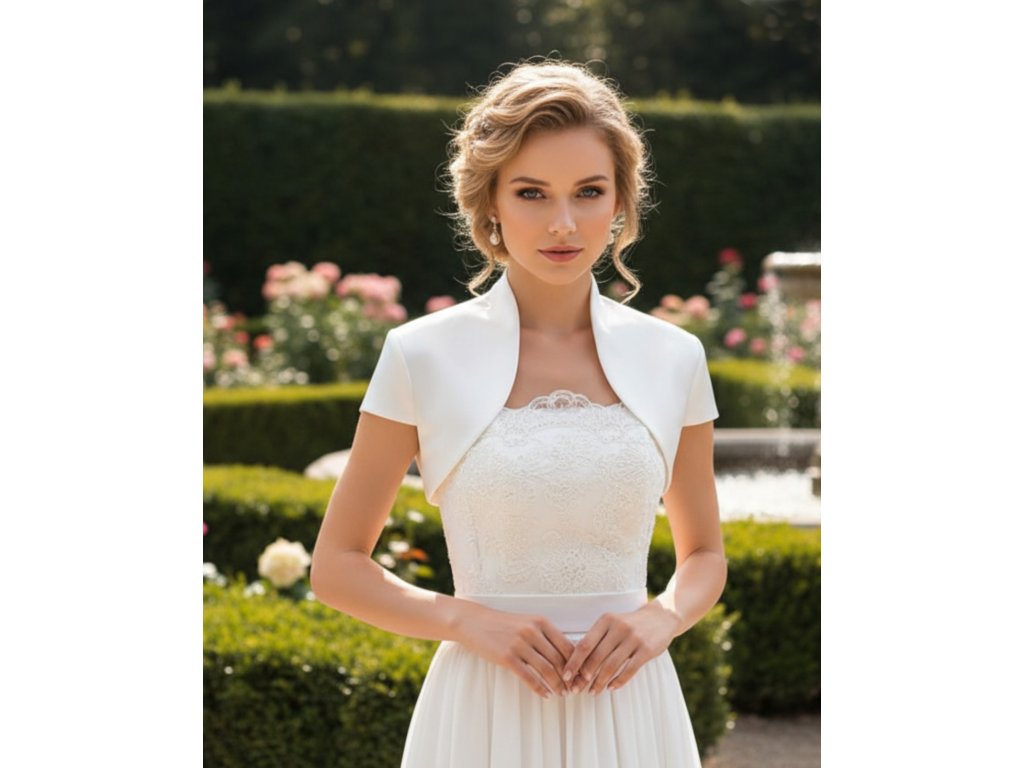 Jednoduché svadobné bolerko zo saténu - ivory: BD-47