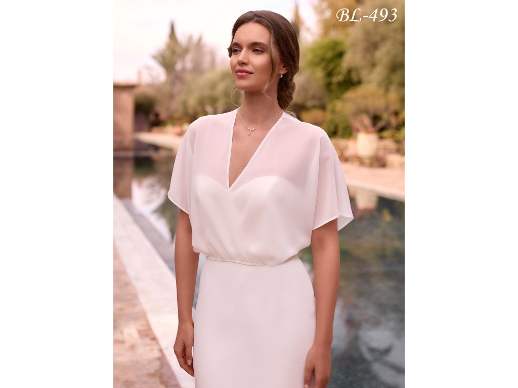 Jednoduchý šifónový svadobný top s motýlími rukávmi.