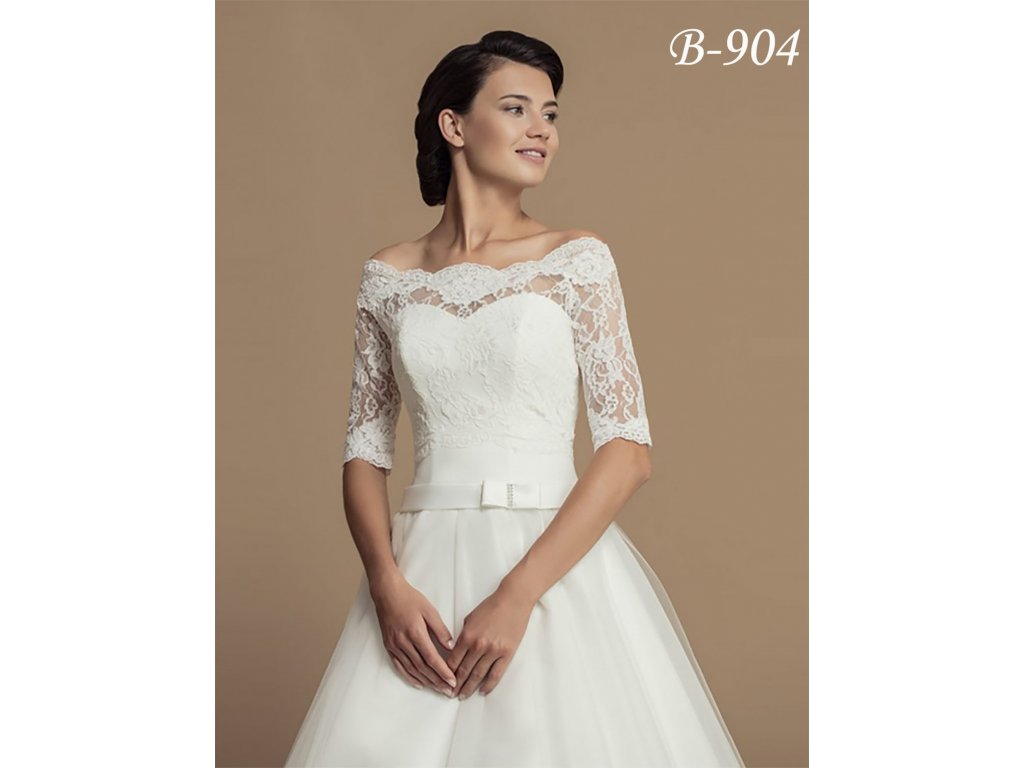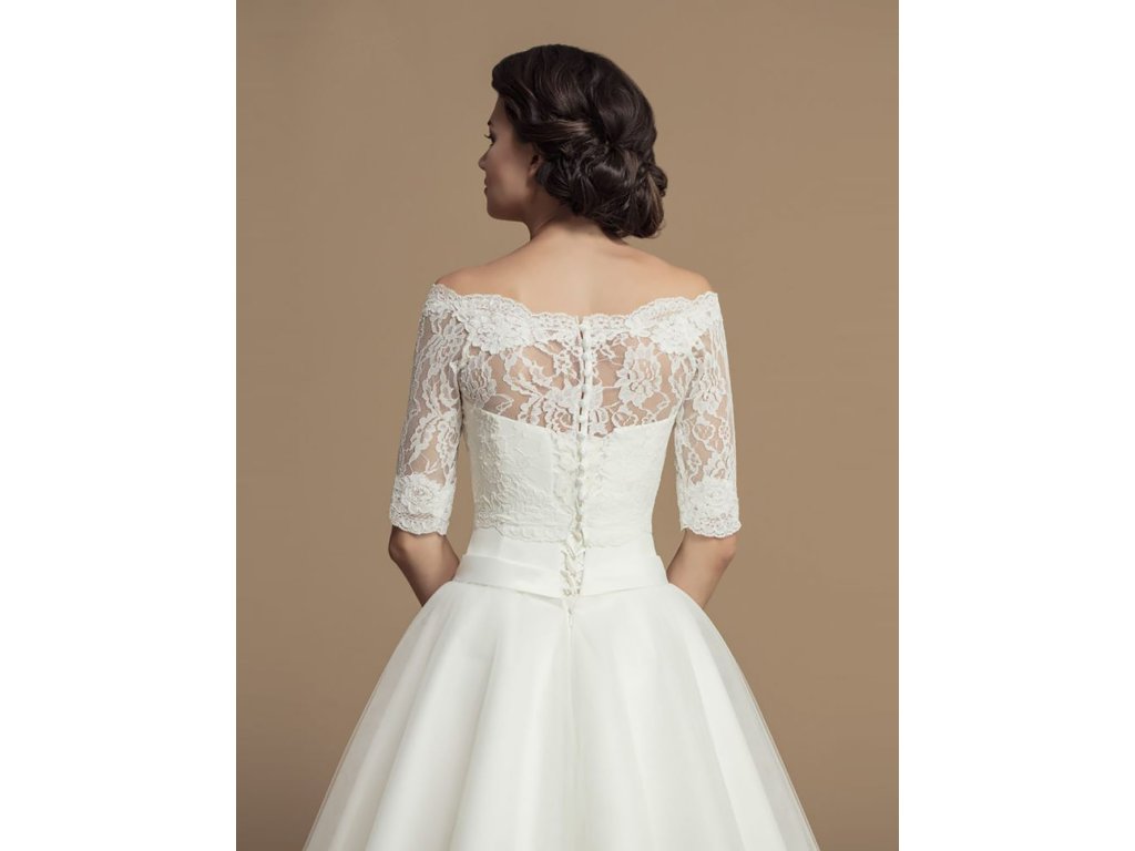 Krajkový svadobný kabátik s 3/4 rukávmi.