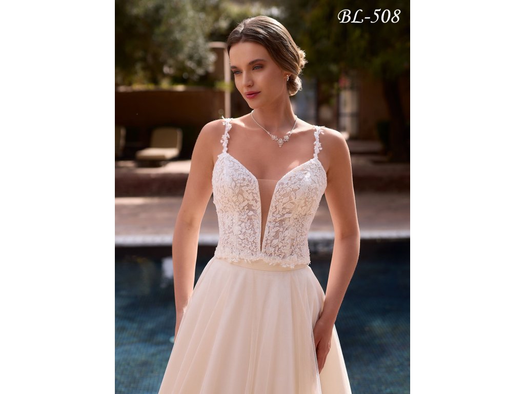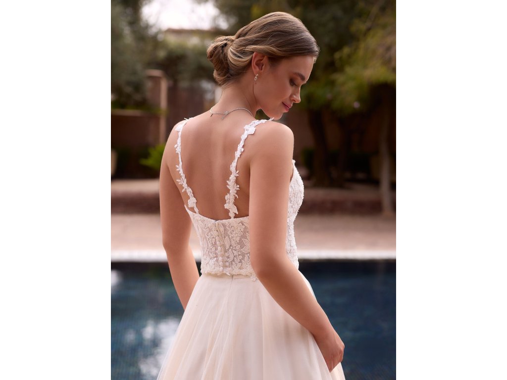 Luxusný korzetový svadobný top zdobený jemnými korálkami a perličkami.