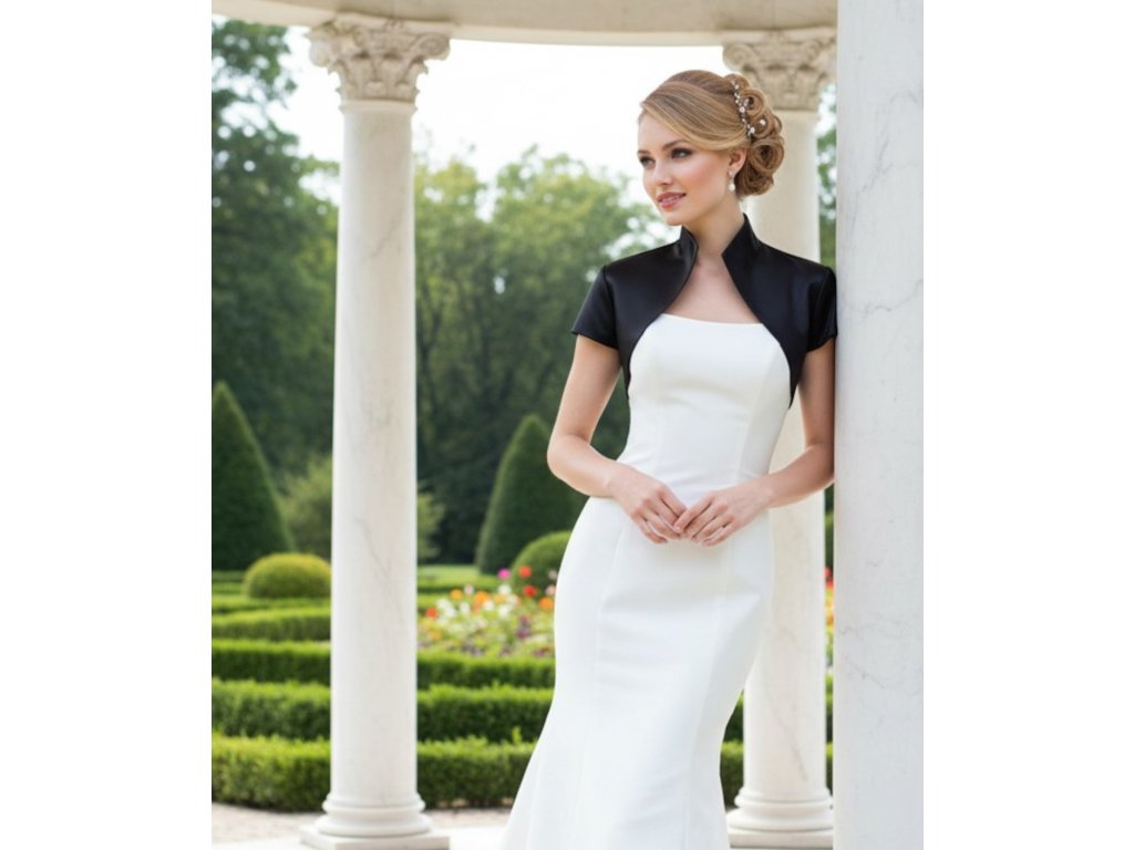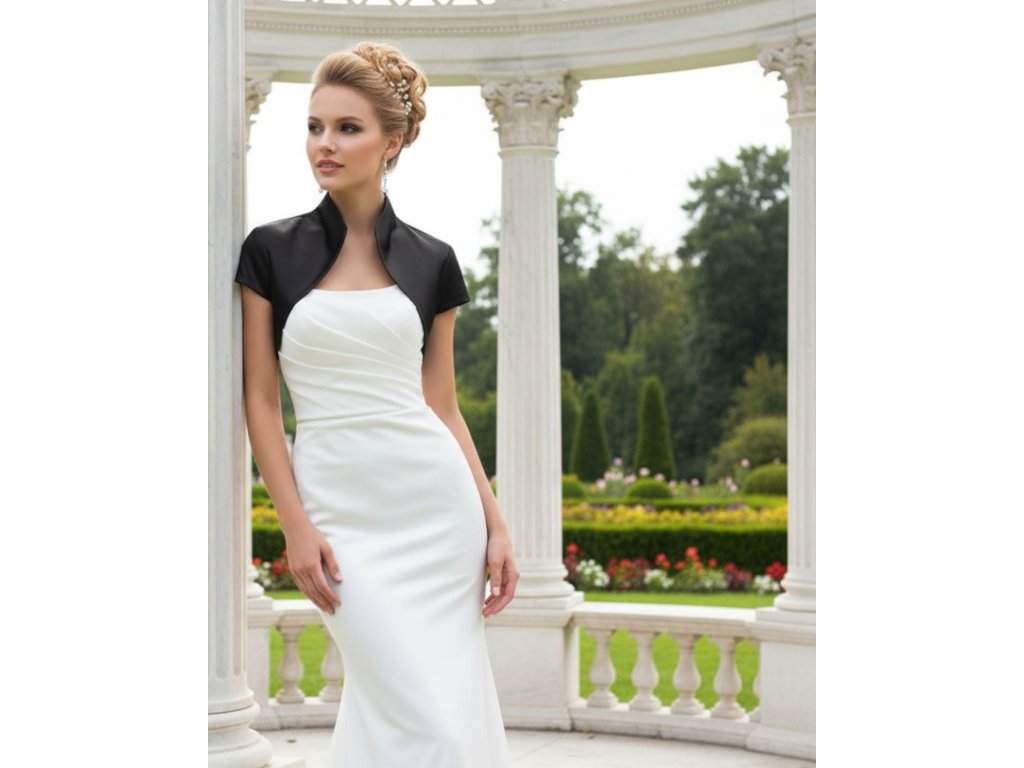 › Svadobné bolerka › Saténové bolerko s krátkym rukávom - čierne: BF-01