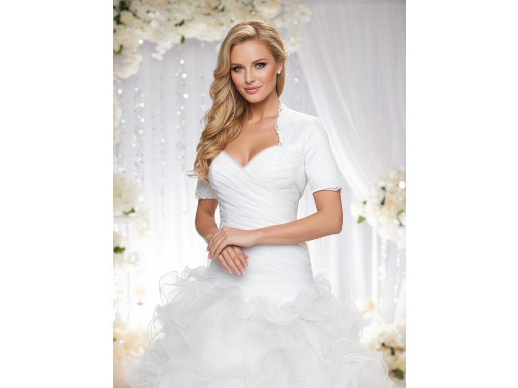 Saténové svadobné bolerko, lemované jemnou čipkou.