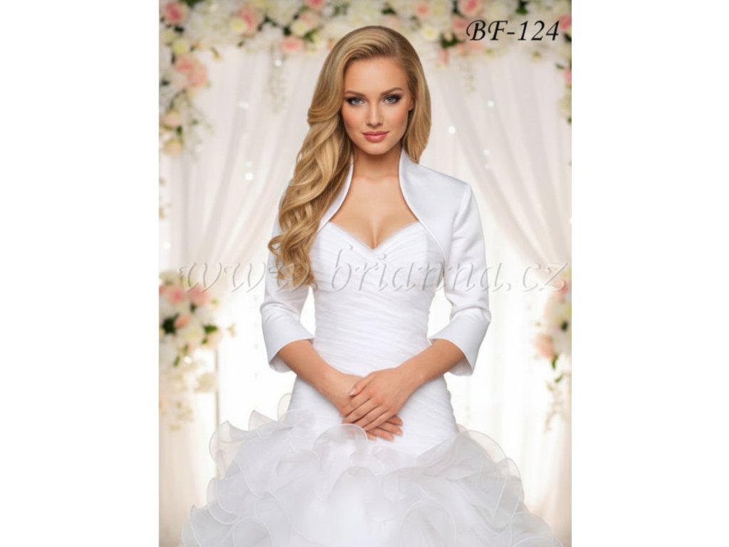 › Svadobné bolerka › Saténové svadobné bolerko-biele: BF-124, veľ. XL a 2XL