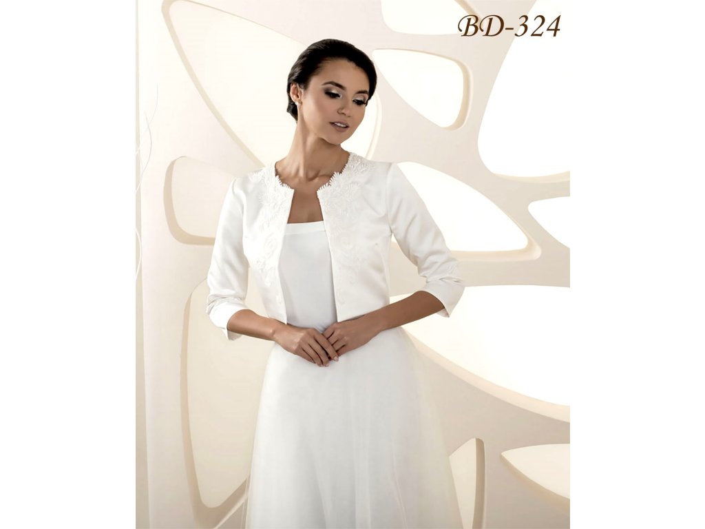 › Svadobné bolerka › Saténové svadobné bolerko pošité čipkou - biele: BD-324