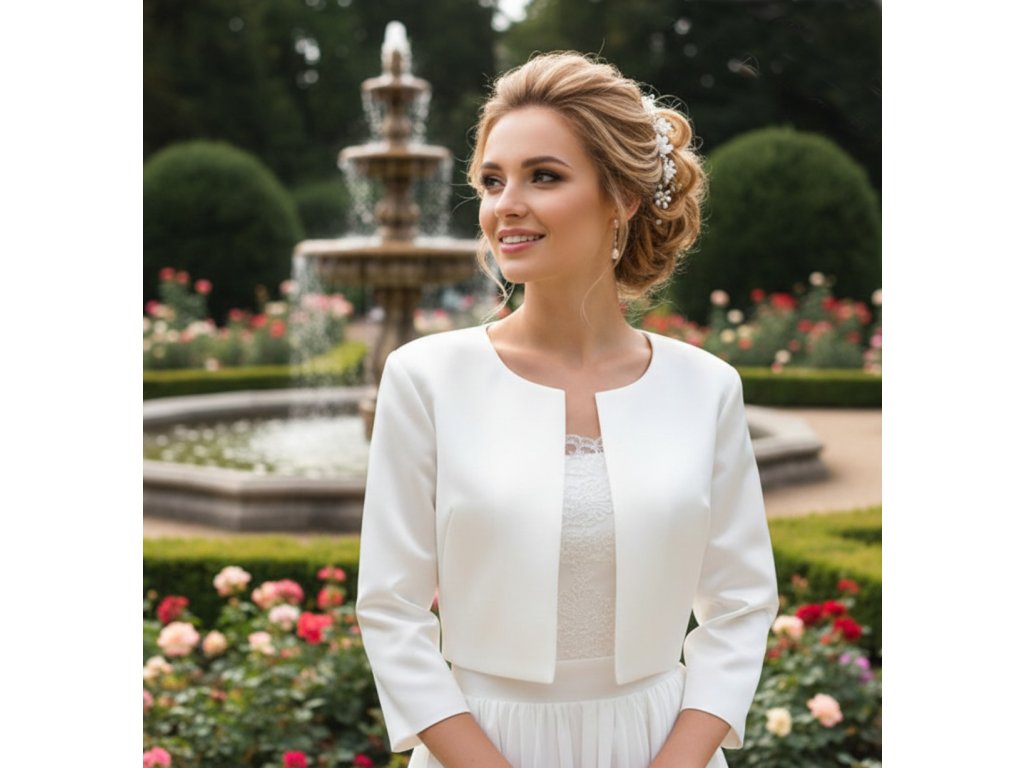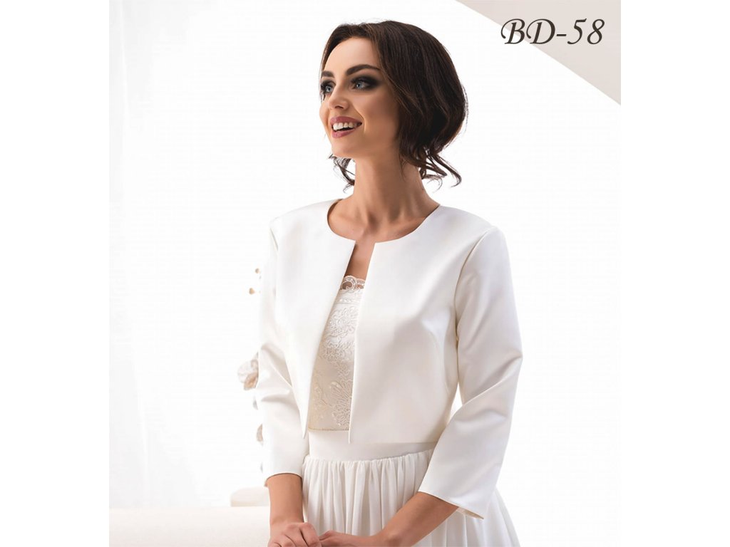 › Svadobné bolerka › Saténové svadobné bolerko s 3/4 rukávmi - biele: BD-58