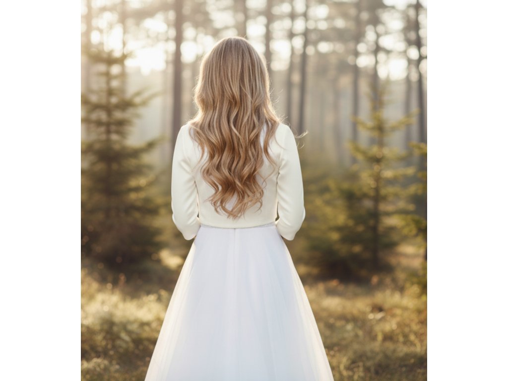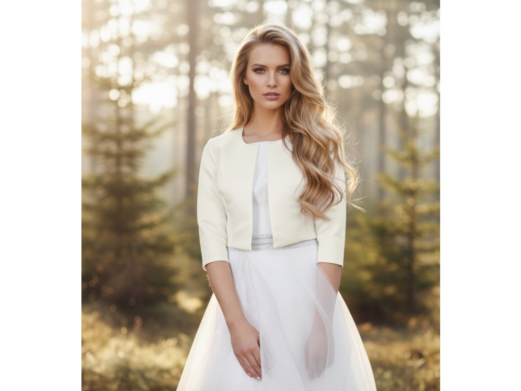 Saténové svadobné bolerko s 3/4 rukávy- ecru: BS-93