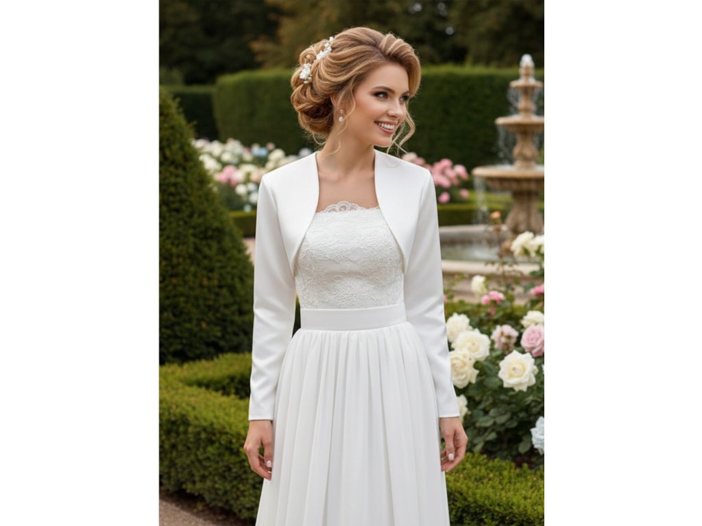 › Svadobné bolerka › Saténové svadobné bolerko s dlhým rukávom - biele: BD-57
