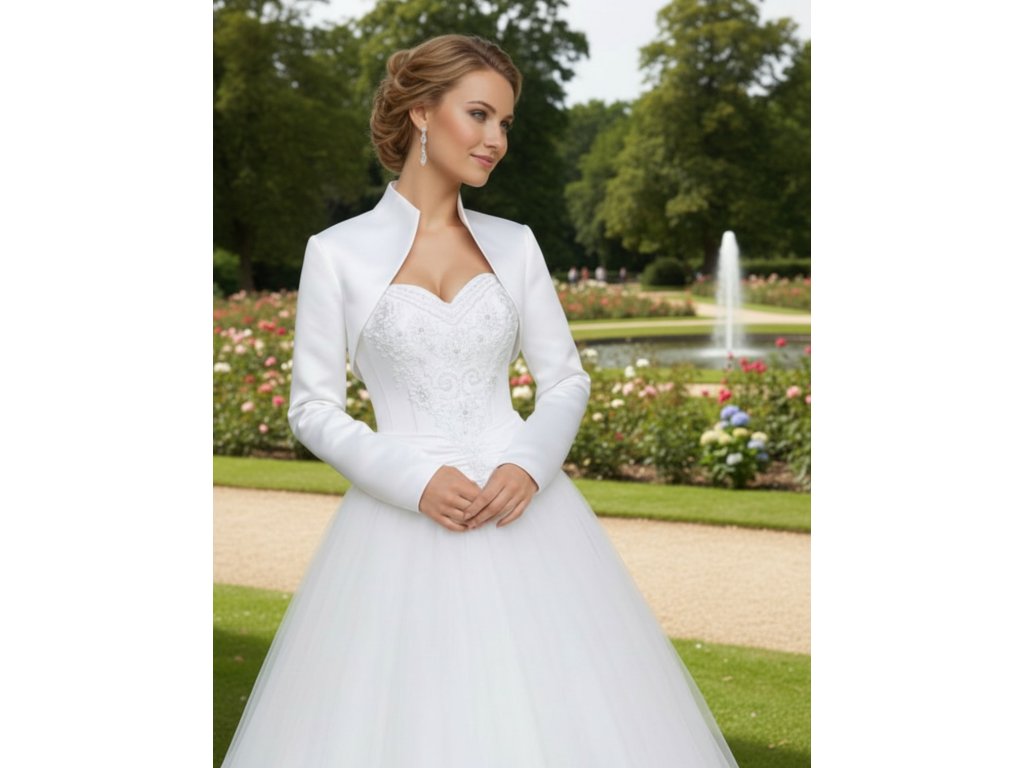 › Svadobné bolerka › Saténové svadobné bolerko s dlhým rukávom - biele: BF-81