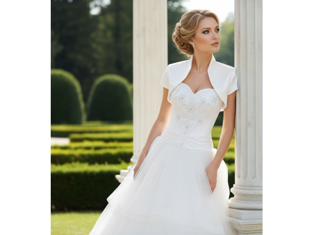 Saténové svadobné bolerko s krátkym rukávom.